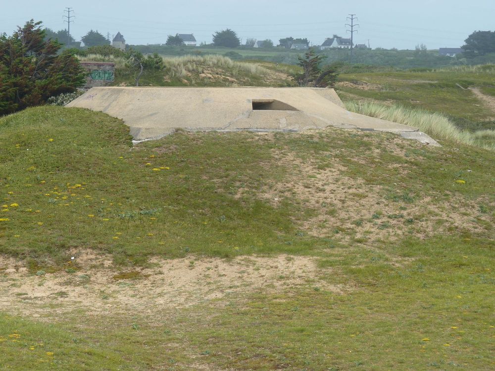 Retenue dès 1940 pour accueillir cet important dispositif de défense, Plouharnel dispose de 1 400 hectares de dunes. Au printemps 1941, la construction du point d’appui démarre. On fait appel à la main-d’œuvre locale mais aussi étrangère, ouvriers volontaires, prisonniers de guerre, déportés… Deux années et 2000 personnes sont nécessaires à la réalisation de cette batterie considérée comme la plus importante et la plus puissante du Mur de l’atlantique. Un modèle de l’ingénierie militaire allemande! Imaginez une armée de travailleurs qui se met à l’ouvrage. Une ferme installée sur la dune produit sur place la nourriture nécessaire, animaux et légumes. Ce site etait le casernement du Marine-Artillerie-Abteilung 264 qui avait été formé en juin 40 à Lorient avec 3 companies. En1941 il avait 4 companies et 5 en 1944 Cette unité était sous les ordres du Marine-Artillerie-Regiment 26, formé en juillet 40 à Seekdt. Bretagne et en Aout 44 il dependra du Festung Lorient Les dunes aménagées abritent 3 canons Schneider, modèle 1912 de 340 mm, (la longueur de chaque canon mesurait 16,15 mètres), pouvant tirer des obus de 427 kg à peès 40 mètres. Ces grosses bêtes furent acheminées par voies ferrée et installées dans d’énormes logements de béton, visibles encore de nos jours.