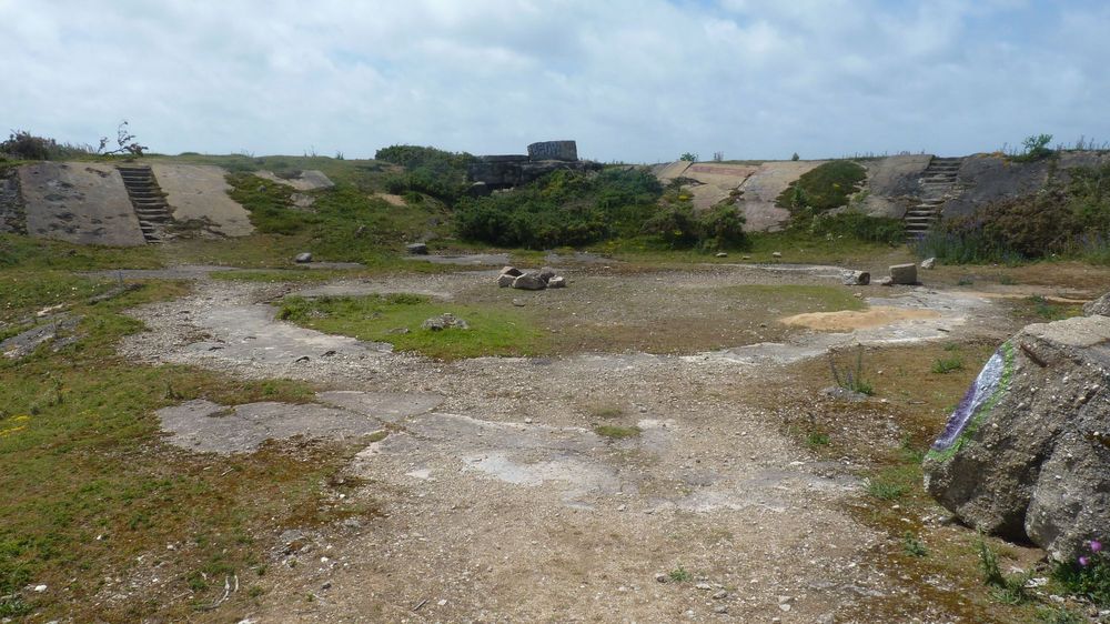 Mais à la différence des autres batteries, ce canons n'étaient pas protégés par des casemates, mais se trouvaient étaient dans des encuvements en béton de 36 mètres de diamètre avec soutes à munitions attenantes. ( 4 encuvements avaient été construits ).Les locaux techniques, abris à personnel étaient à proximité. Ces canons sur rail datant de la première guerre mondiale. furent débarrassés de leurs trains de roulement et installés dans leurs encuvellements Ils étaient guidés par un poste de direction de tir qui est une tour de 14m de haut et un imposant télémètre de marine La détection maritime était assistée par un radar Würzburg SEERIESE placé à proximité du poste de direction de tir.
