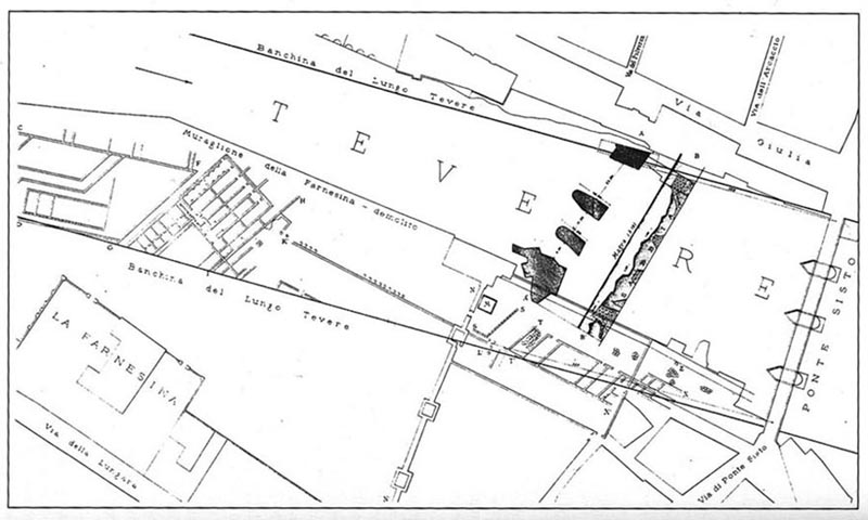 VI.31545, see Trigarium);. Il lui permettait d aller des proprietés situé dans le Transtevere au champs de Mars. Ce pont a été demantelé apres la constructions des murailles d'Aurelien pour faire un glacis ou peut etre pour securiser la berge rendue