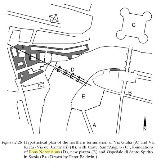 Le texte de l’ Anonyme Magliabechian parle de lui en ces termes Pons Neronis diruto ad sanctus Spiritus in Saxia, come Pons Ruptus ad S. Spiritum e Pons Neronianus ad Sassiam in Mirabilia.,).