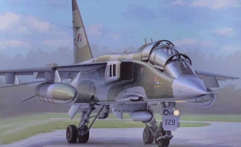 . Sur les avions ETPS, le canon a ensuite été retiré. Le biplace n en possédait pas du télémètre laser du conteneur de guerre électronique sur la quille. 14 biplaces, modifiées sur le modèle de la Jaguar GR.1A, ont été nommées Jaguar T.2A. Les avions modifiés pour l'installation du conteneur TIALD ont été nommés Jaguar T.2B. En septembre 1998, la modernisation de 11 "Jaguars" T.2 en version Jaguar T.4 a commencé, En 1991, les chasseurs-bombardiers Jaguar ont démontré leur grande capacité de survie, leur polyvalence et leur facilité d'utilisation lors des opérations militaires dans le golfe Persique. Ce sont les résultats de l'opération Desert Storm qui ont contraint à reporter le retrait de ces appareils du service de l'armée de l'air britannique. Le Jaguar a montré ses meilleures qualités dans de nombreuses opérations de maintien de la paix ultérieures de l'OTAN et de l'ONU. Au cours des actions des forces de l'OTAN dans les Balkans, une pénurie critique dans l'armée de l'air britannique d'avions capables de délivrer des frappes de précision avec des munitions « intelligentes » est apparue. Il a été décidé d'équiper l'avion dans les plus brefs délais d'un équipement pour l'éclairage laser des cibles. Les travaux ont commencé immédiatement sur l'intégration du conteneur GES TLALD (Thermal Imaging Airborne Laser Designator) sur les chasseurs Tornado. Cinq Tornado avaient déja été équipés de tels conteneurs lors de l'opération Desert Storm, mais après la fin de la guerre, le processus a été fortement ralenti. En outre, des travaux étaient en cours pour intégrer de nouveaux systèmes d'armes sur l'avion Harrier VTOL, une suite logique du processus de modernisation était l'équipement des avions Jaguar avec des équipements laser. L'organisation de recherche pour la défense DRA (Defense Research Agency) était engagée dans le développement et les tests d'équipements sur un avion à réaction unique. Les expériences ont été menées sur un avion Jaguar modifié. Leur résultat était positif : les avions Harrier GR.Mk 7 (plus tard Typhoon) et Jaguar étaient adaptés au conteneur TIALD.La RAF transforme 12 Jaguar pour l'adaptation la plus rapide et l'installation de conteneurs TIALD - dix monoplaces (plus tard désignés GR.Mk 1B ) et deux biplaces (T.Mk 2B). La commande a été approuvée en juin 1994 et, en mai 1995, les deux premiers Jaguar équipés de conteneurs TLALD effectuaient déjà des vols de patrouille au-dessus de la Bosnie. A l usage des améliorations furent apportées sur l'installation de conteneurs avec équipement de guidage laser In fine l'avion a subi une modernisation : toute l'électronique embarquée du GR.Mk 1B a été associée à une interface numérique de la norme MIL STD 1553B, un système de navigation par satellite GPS. récepteur et un indicateur d'une carte numérique du terrain en mouvement ont été installés. Jaguar GR.1B L'avion GR.Mk 1B a opéré au-dessus de la Bosnie sans avoir à se ravitailler grace à un réservoir de carburant a été suspendu au pylône ventral,charge Avec ce reservoir il pouvait aussi emporter un conteneur TIALD et une bombe à guidage laser ont été suspendus au pylône sous l'aile. Avec cette version le deuxième avion n'était plus nécessaire pour éclairer la cible