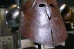 Ce type de casque est typiquement italique. Il est extrêmement prisé dans tout le Sud de la péninsule. Il puise son inspiration dans les modèles Corinthiens Grecs qui étaient portés sur la tête de cette façon, jusqu’au moment de l’affrontement final. Ils étaient alors rabattus sur le visage pour le combat. Les reconstitutions récentes ont d’ailleurs pu démontrer qu’il est quasiment impossible de le garder très longtemps dans la position baissée au combat, en plein soleil, Il y règne alors une chaleur qui devient très vite insupportable, provoquant une transpiration qui brûle les yeux. C’est cela qui a probablement donné l’idée de fabriquer des modèles imitant la position renversée sur le crâne, beaucoup plus confortable par fortes chaleurs, et que l’on appellera plus tard Apulo-Corinthien.