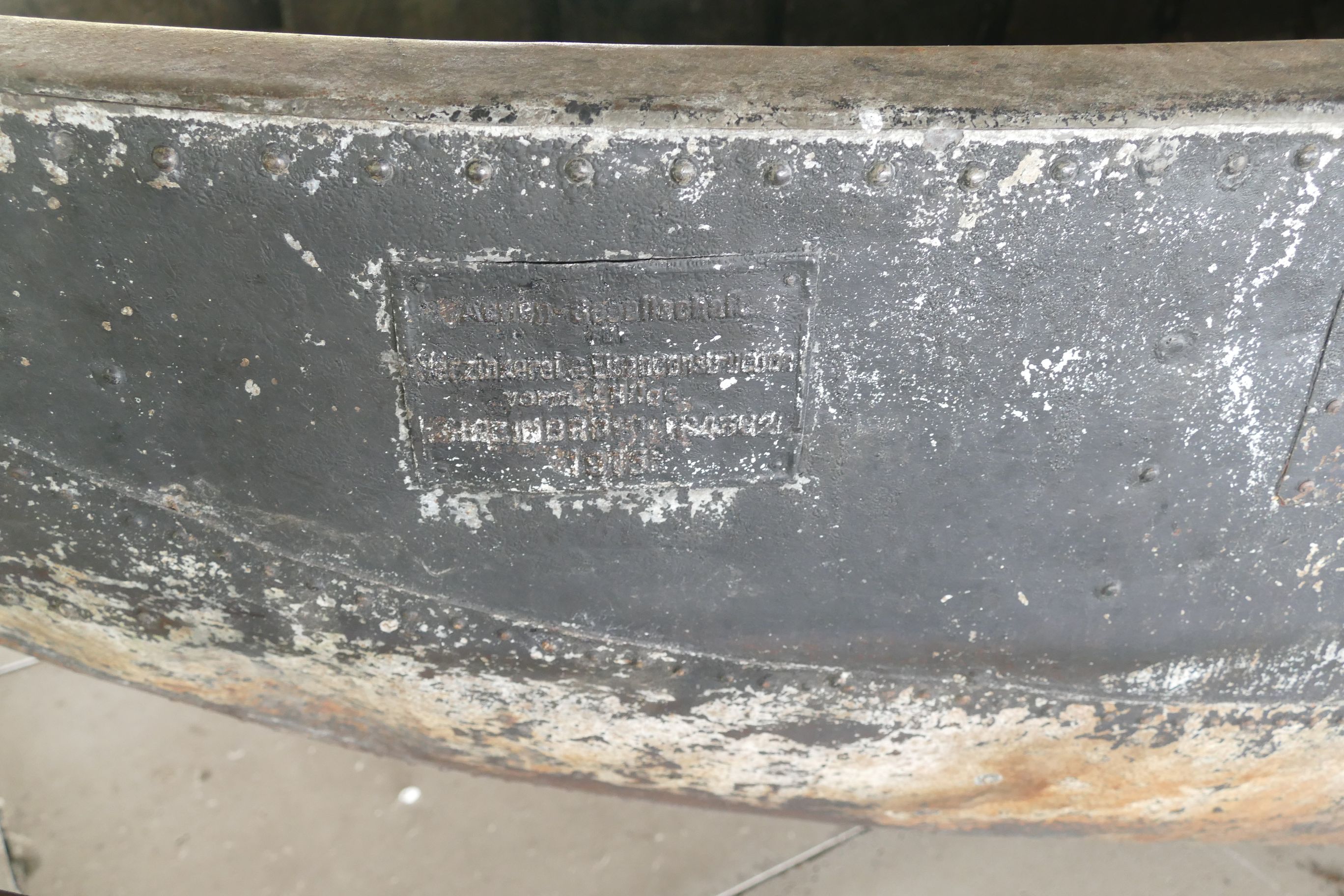 Cette barge allemande de 1915 servait entre autres de plateforme à la construction de pont flottant. Laissée sur les bords de la Marne dans les environs de Laon, elle était promise à la destruction.Une mission de sauvetage a donc été mise en œuvre pour sauver la pièce : le musée - avec l’aide de l’association de reconstitution historique France 40 qui a apporté un appui logistique-, a réussi à arracher la barge du terrain où elle était en partie enterrée. Cette pièce rarissime, est depuis le mois d’août 2016 installée et visible sur le parvis du musée.