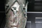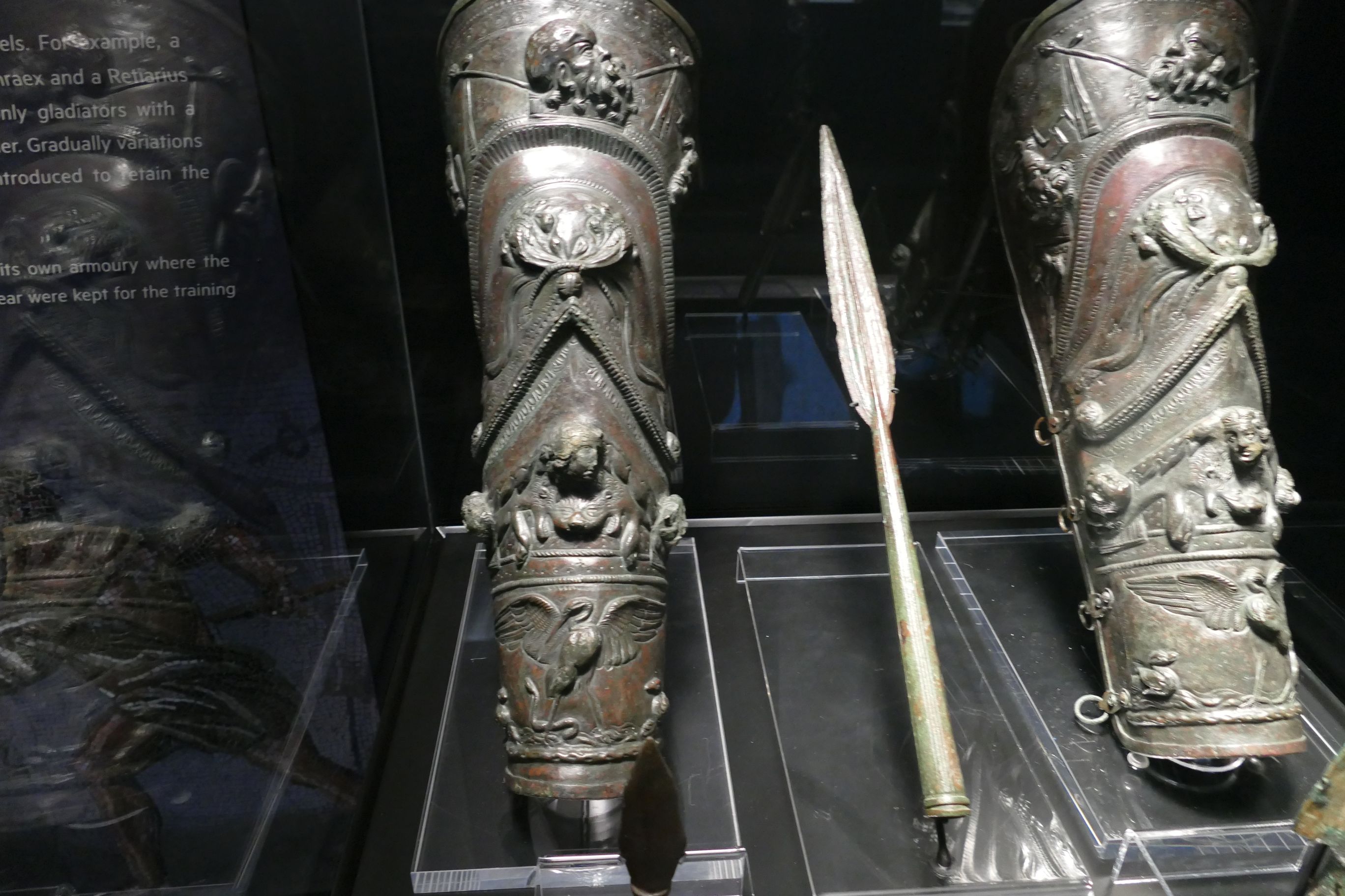 C'est une pièce d 'armure défensive qui couvrait le tibia depuis la cheville jusqu'un peu au-dessus du genou. |