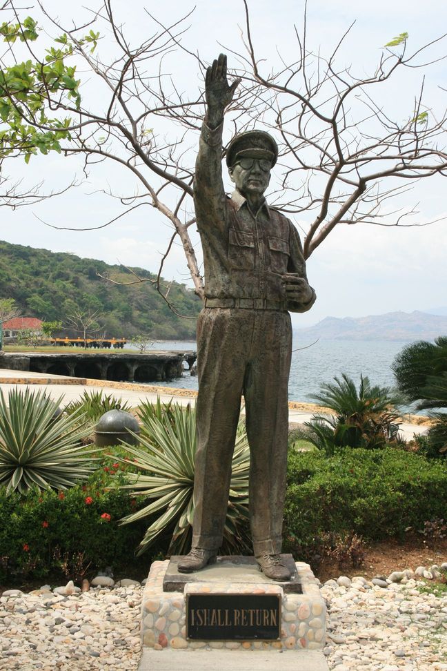 Le 20 octobre 1944, les forces de Mac Arthur débarquèrent dans le Golfe de Leyte juste au sud de Tacloban. Dans une mise en scène on découvre, Mac Arthur débarquant avec le nouveau président philippin Il demande aux citoyens philippins et les forces de guérilla à se rallier à lui contre l'occupant japonais: