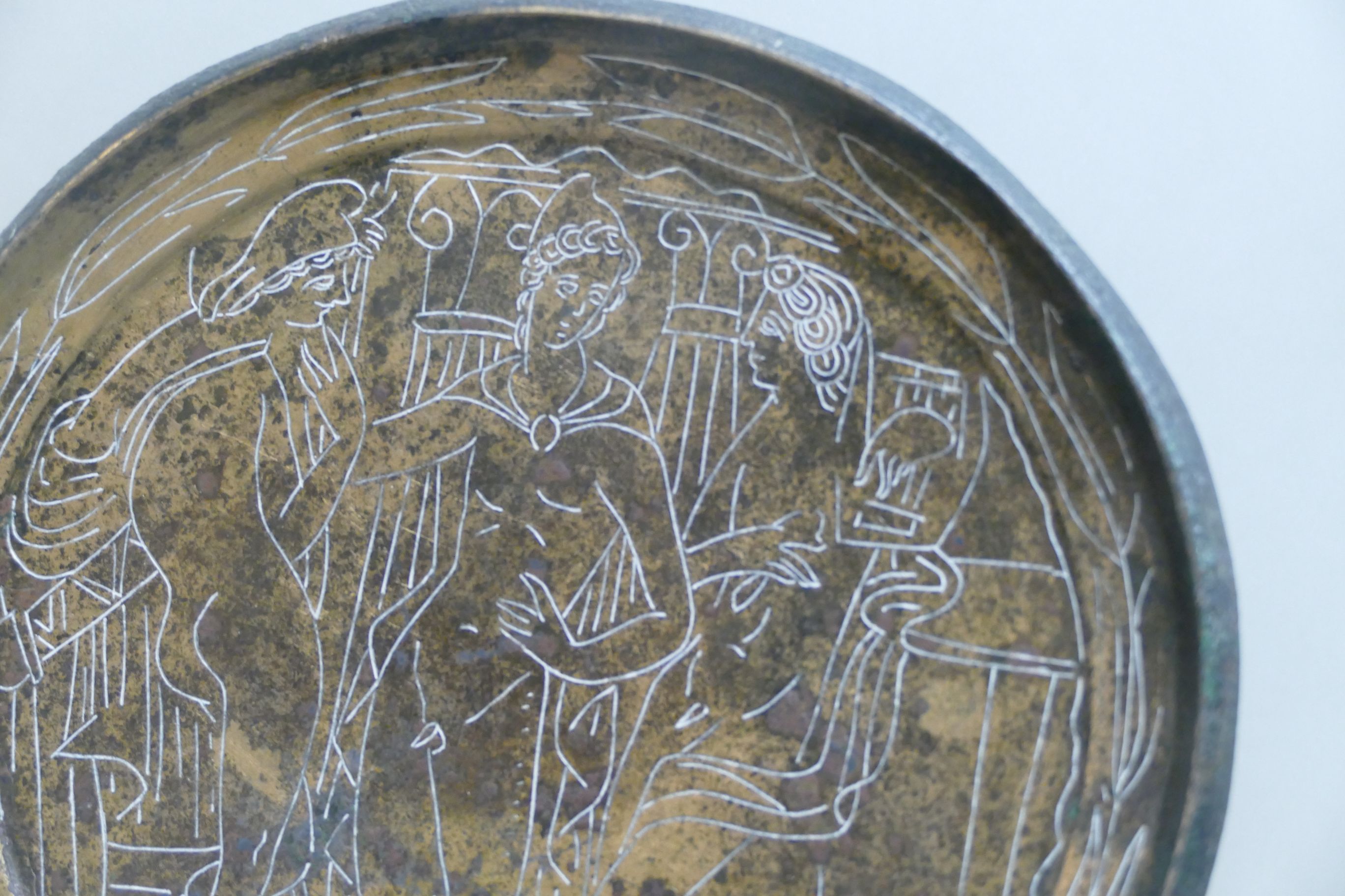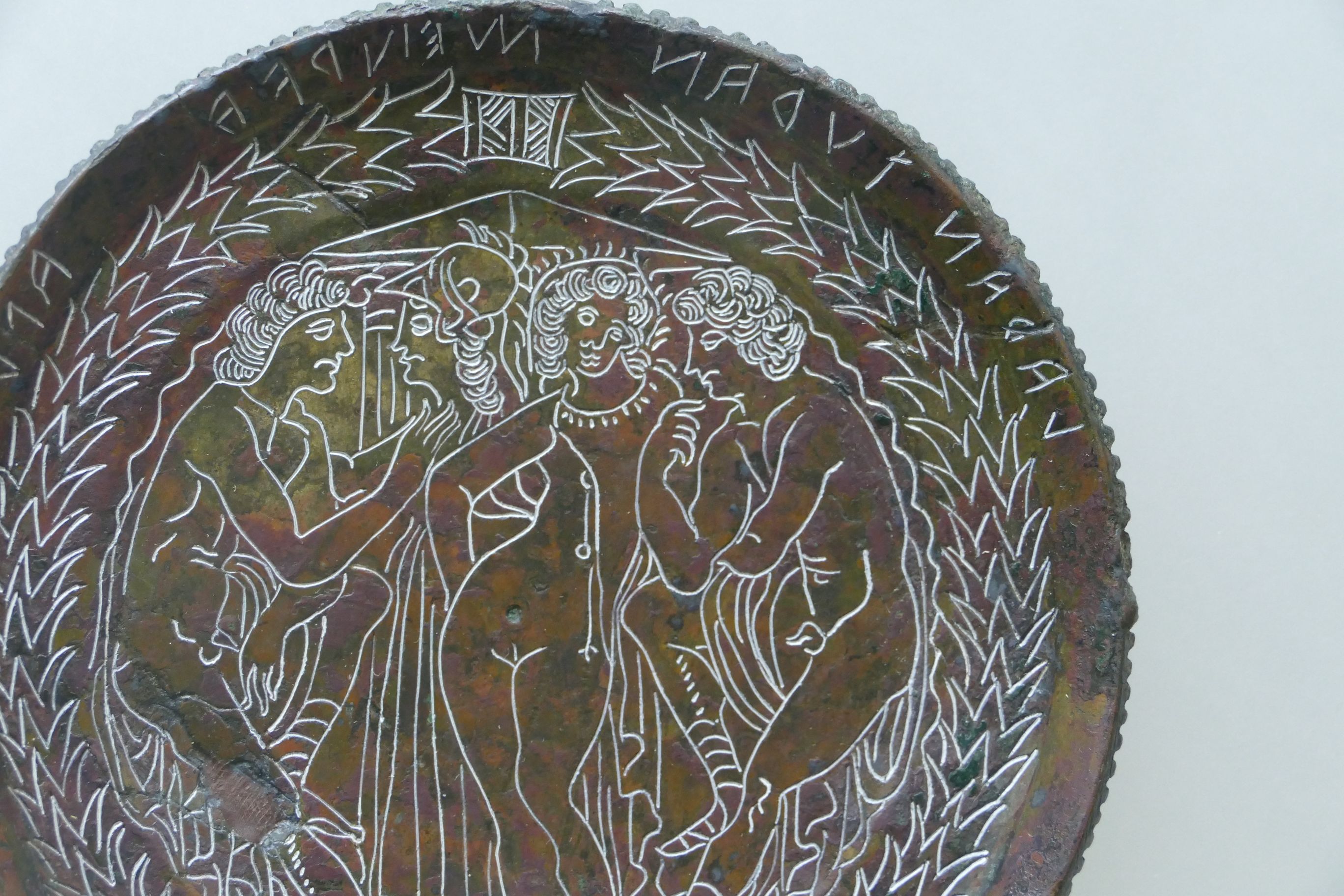 Les miroirs de bronze gravés ou, plus rarement, décorés en relief sur la face postérieure à celle réfléchissante, sont un genre particulièrement représentatif de l’artisanat étrusque. Ils ont été produits entre le VIe et le IIIe siècle av. J.-C. et ont connu un développement particulier au IVe siècle av. J.-C.Un grand nombre de ces miroirs d'un style très similaire ont été découverts en Etrurie et on a déduit que ces objets très caractéristiques proviennent  d'un atelier étrusque dans ou près de Préneste.