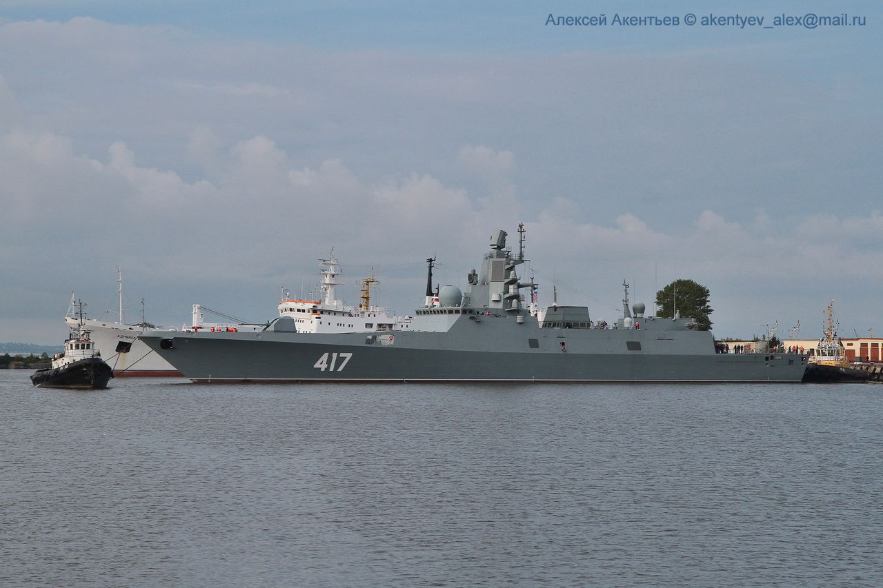 De retards en contretemps, les essais constructeur (étape préliminaire avant les essais d’homologation étatiques) n’ont débuté que le 18 novembre 2014. Il fallut pourtant attendre encore pas moins de quatre ans pour assister à la remise de la frégate au client ! En effet, à cause de diverses difficultés techniques sur lesquelles nous allons revenir, les essais du bâtiment ont duré beaucoup plus longtemps que prévu et ce n’est qu’en mars 2017 que la frégate est entrée dans la dernière phase des essais d’homologation. Enfin, c’est le 26 juillet 2018 que fut signé le certificat d’acceptation du navire permettant de l’admettre au service deux jours plus tard avec la cérémonie de lever du drapeau de la marine russe. Il rejoignit alors la Flotte du Nord (unité 43 DRK) et sa base de Severomorsk.