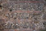 La construction du rempart a nécessité l'arasement d'une vaste superficie affectant le paysage urbain, de façon à dégager toute la zone des abords et du tracé même des défenses. Le fait de retrouver des éléments de grand module dans certaines parties du soubassement laisse supposer que plusieurs des grands monuments publics pouvaient se situer, ou sur le tracé même, ou à son avant