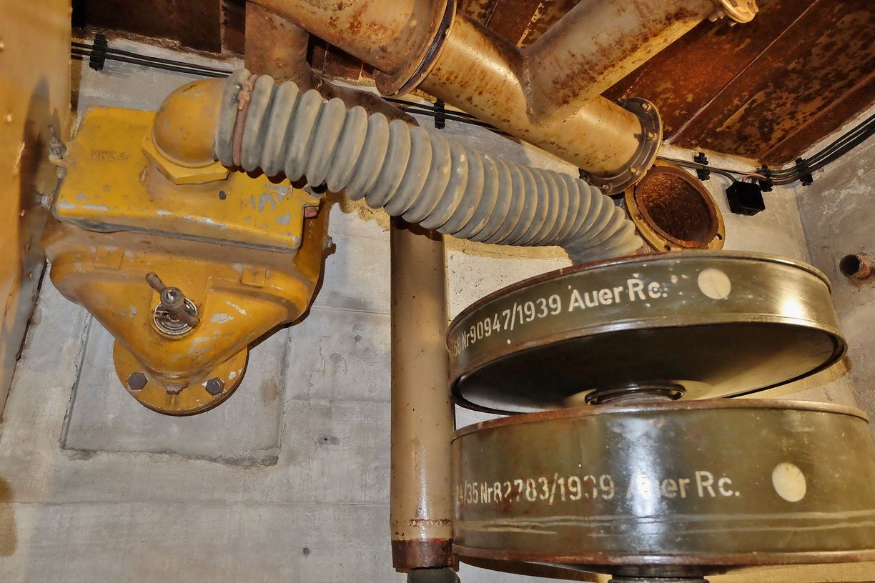 En se basant sur l'expérience de la première guerre mondiale, l'armée allemande prit au sérieux la menace d'attaque par les gaz pour l’élaboration de ses fortifications permanentes. • Il était impératif de construire des bunkers dotés d'une protection anti-gaz et d'un système de renouvellement de l’air pour les occupants.