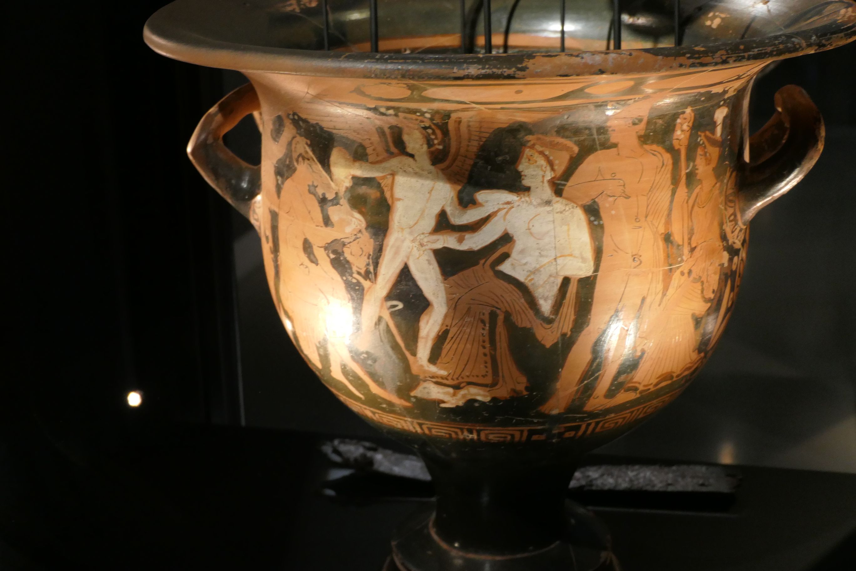 Le cratère en cloche, nommé ainsi en raison de sa forme générale, est un large vase destiné au mélange de l'eau et du vin, consommé lors des banquets
