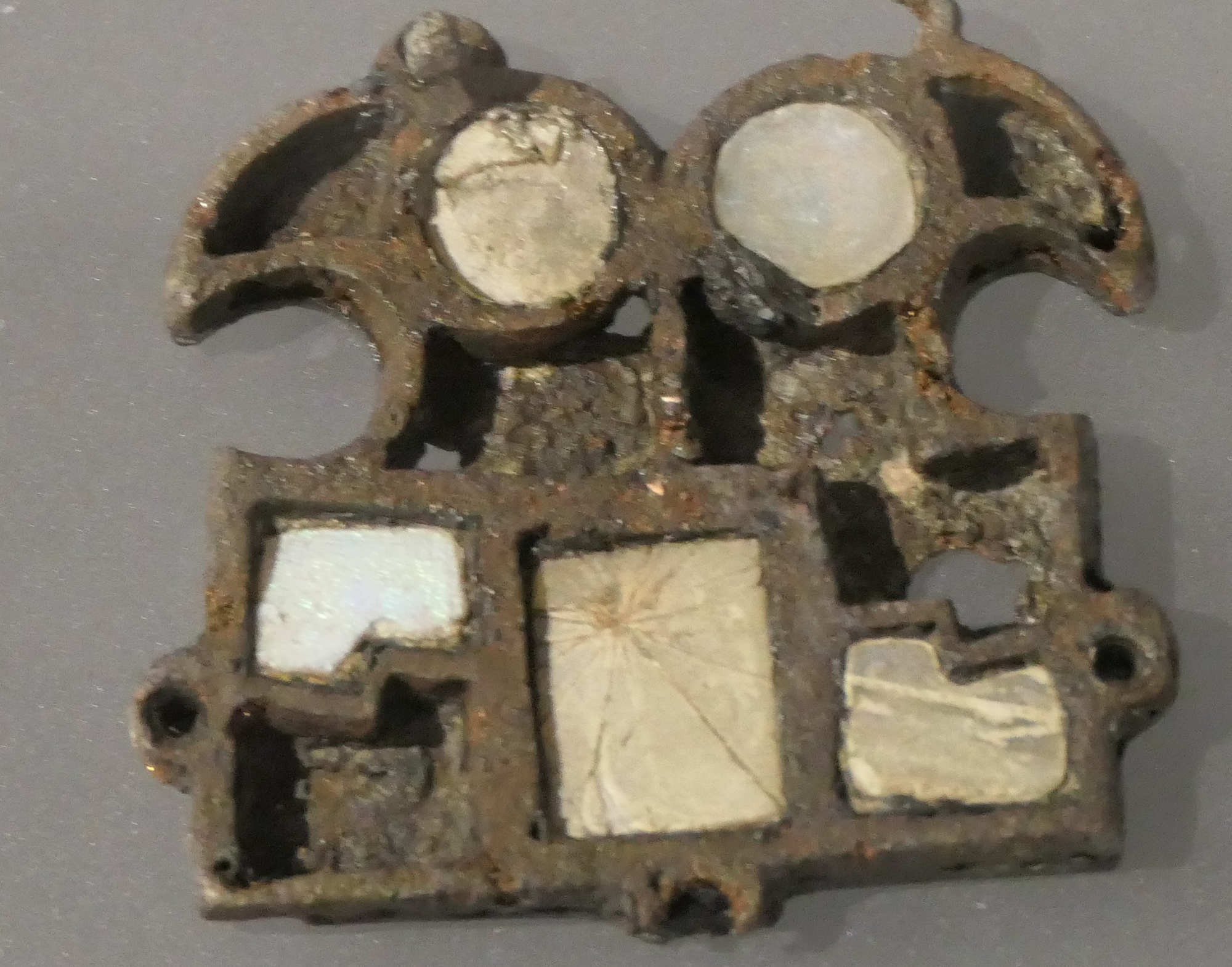 Parfois porte-symboles chrétiens (croix, motifs solaires adaptés à la foi nouvelle).