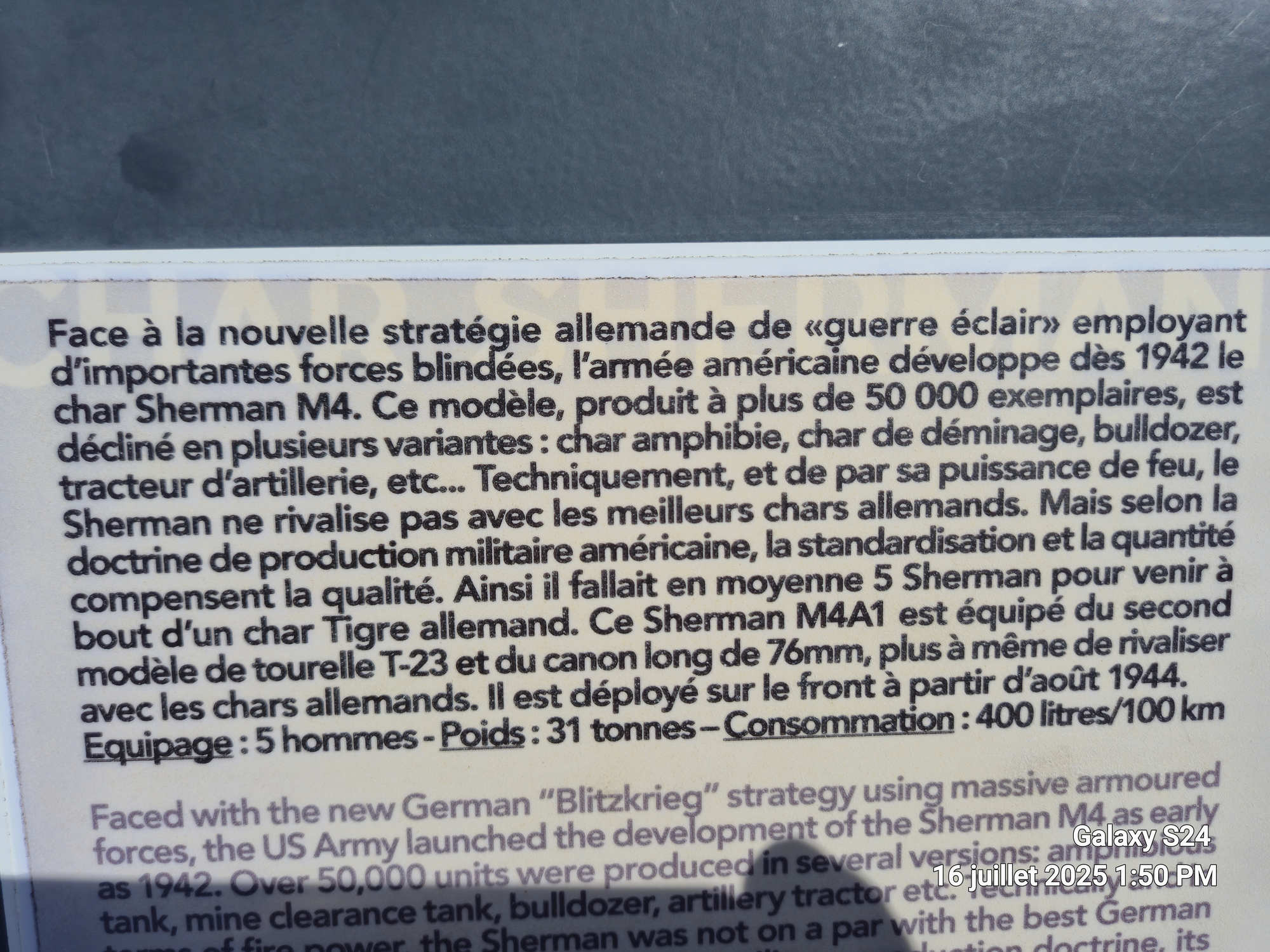 Mais il n'a jamais vu de combat, car personne en voulait à l'époque. La principale raison était le manque de temps pour l'entraînement sur le M4A1 (76) W avant le Jour J, et aec l adoption de ce modèle la chaine d'approvisionnement des munitions allait se compliquer avec les munitions des M1