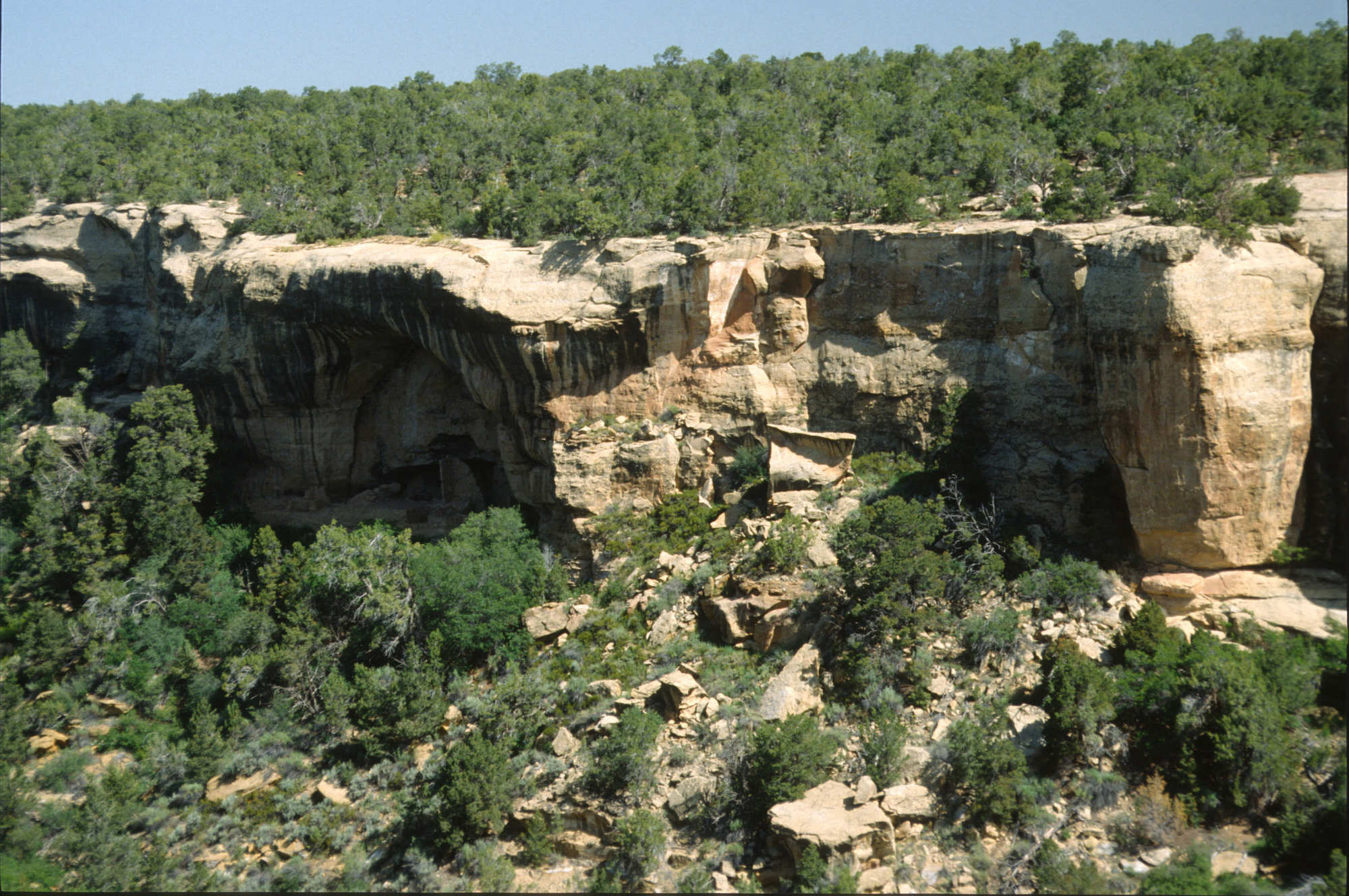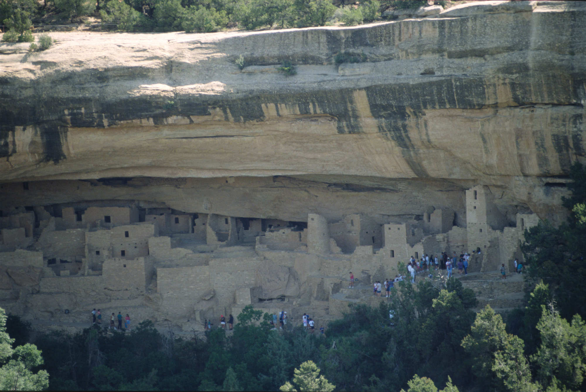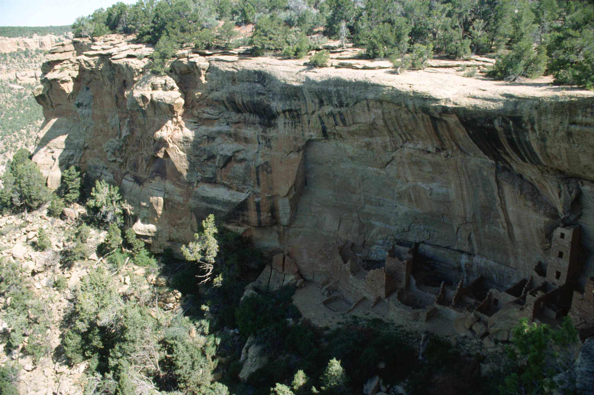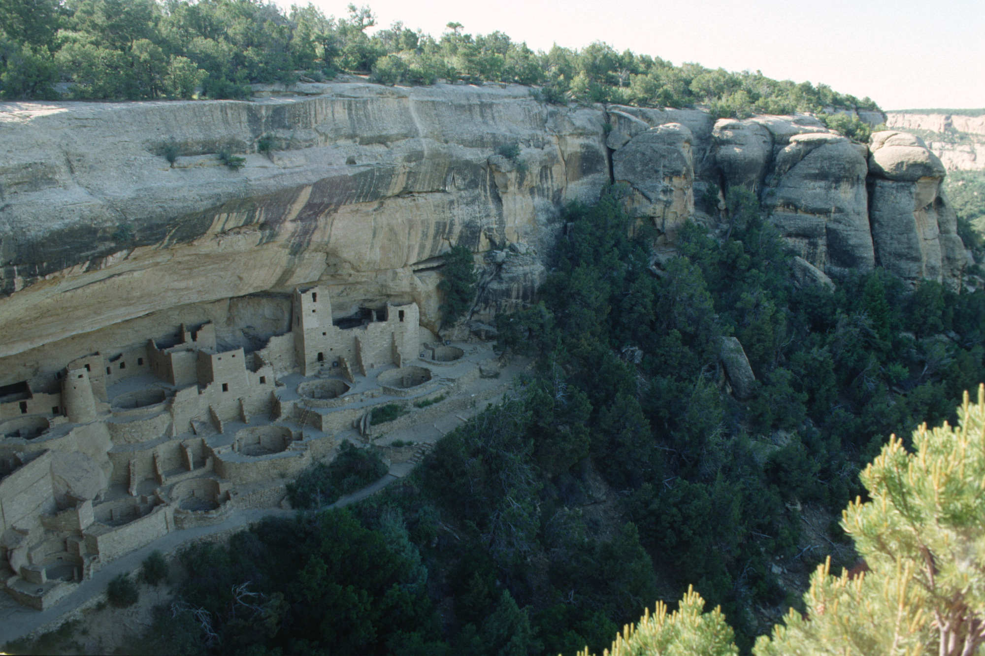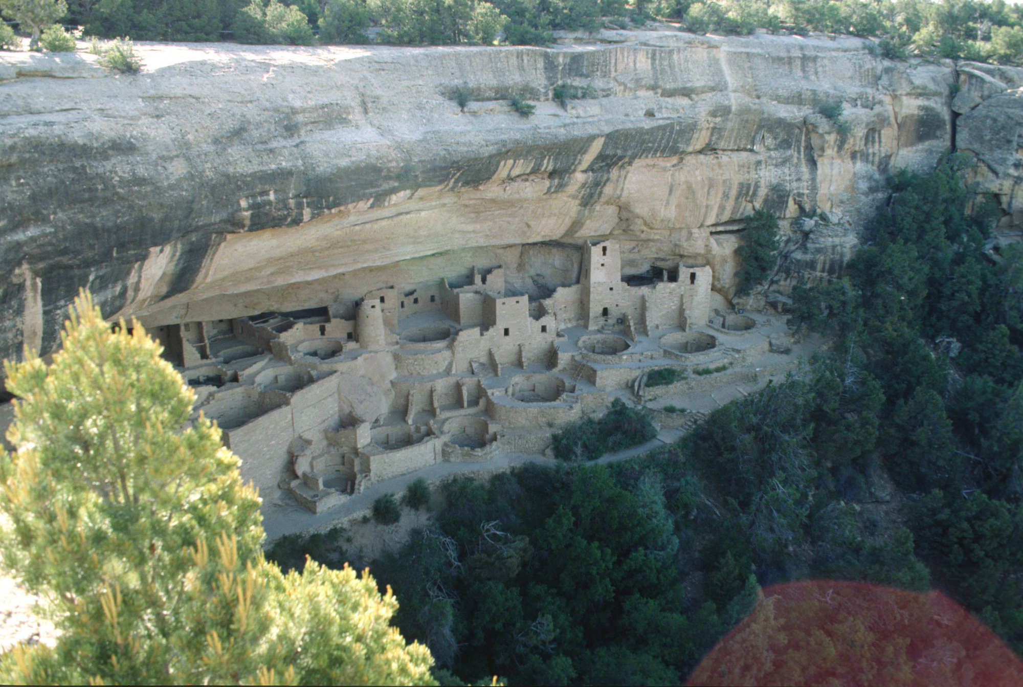 Cliff Palace, est la plus grande et la plus célèbre des habitations troglodytes des anciens Pueblos. Construite principalement à la fin du XIIe siècle (entre 1190 et 1300 après J.-C.), elle se compose d'environ 150 pièces et de plus de 20 kivas circulaires (salles cérémonielles souterraines). Les structures sont construites en pierre et en mortier de terre, ingénieusement adaptées à l'alcôve naturelle de grès qui protège le complexe