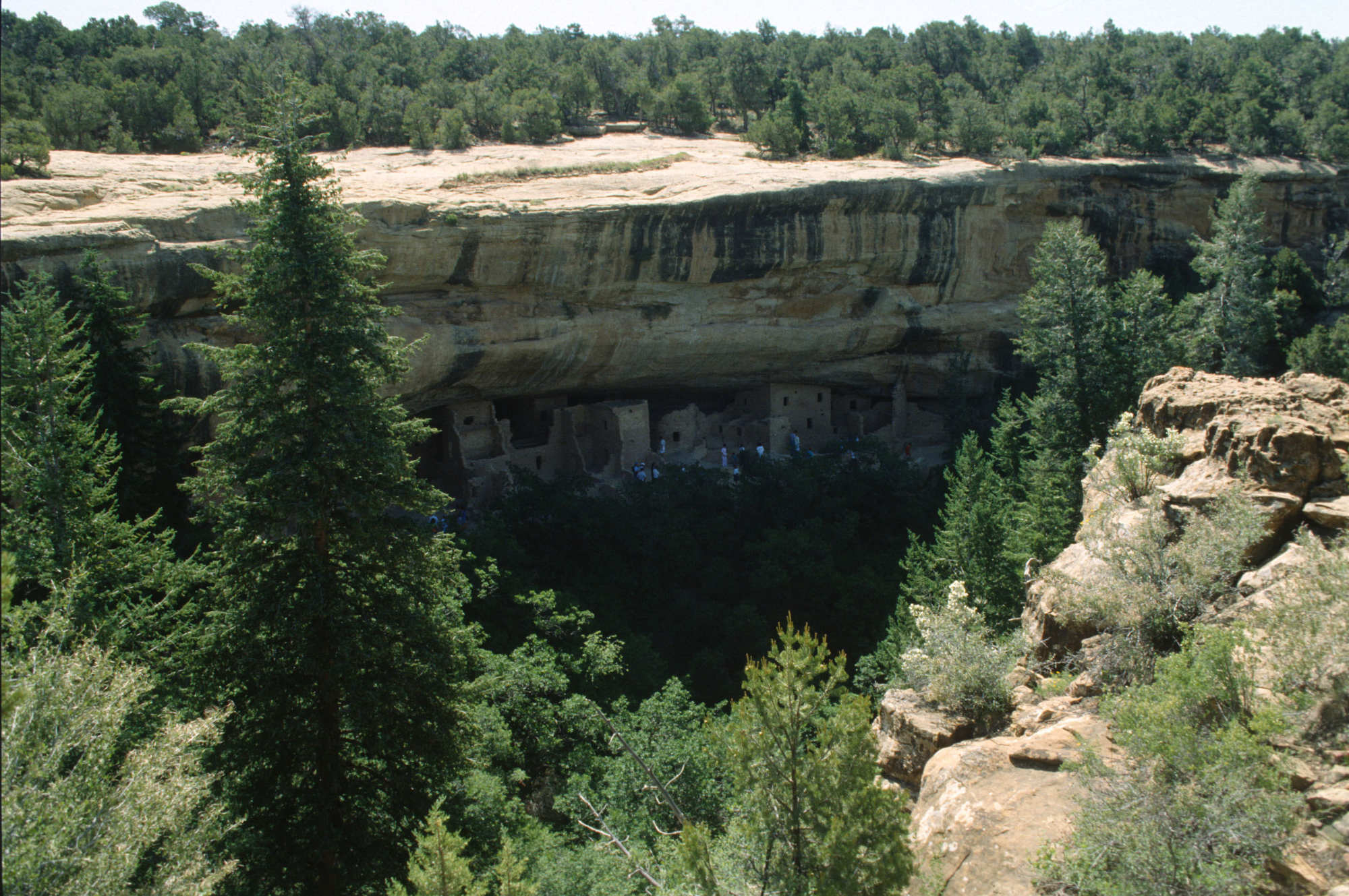 Le parc s'étend sur environ 210 kilomètres carrés et compte quelque 600 habitations troglodytiques et près de 4 400 sites archéologiques, dont des villages composés de plusieurs pièces et des kivas cérémoniels construits dans des alcôves de grès.