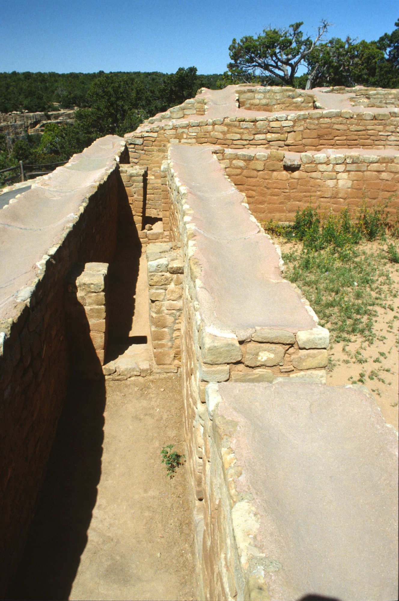 C est une imposante structure rectangulaire en pierre, construite vers 1200 de notre ère, sur un haut plateau dominant Cliff Canyon. Il se distingue par sa forme en D caractéristique, ses épais murs de maçonnerie de plus d'un mètre de haut et l'absence de toiture ou d'objets domestiques, suggérant qu'il ne s'agissait pas d'un bâtiment résidentiel, mais plutôt d'un lieu de culte ou d'activités sociales pour la communauté pueblo vivant à proximité, dans le palais de Cliff Palace.
