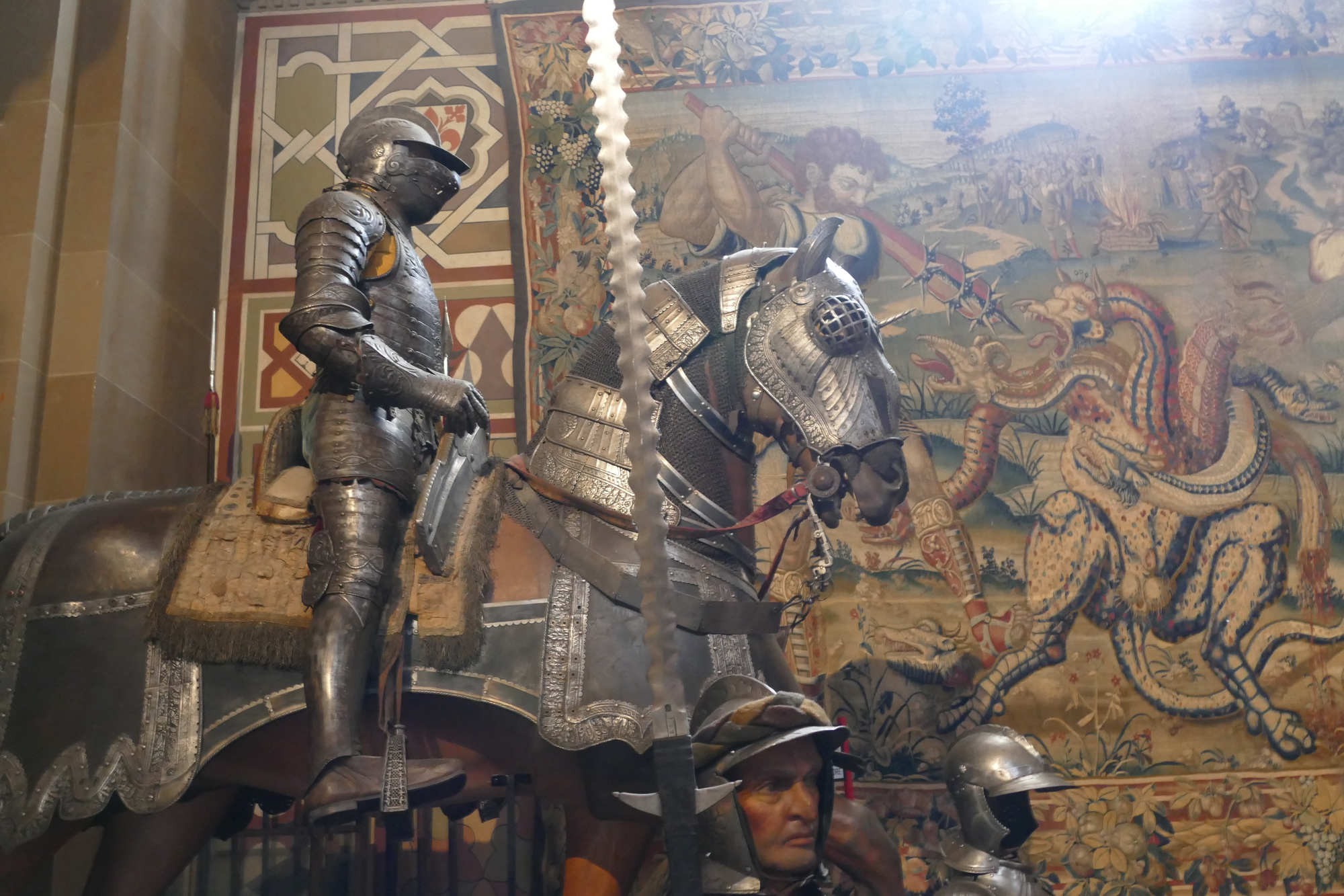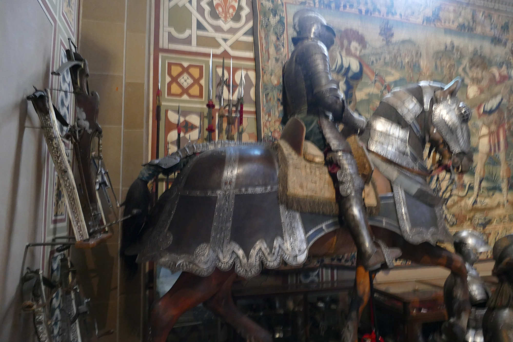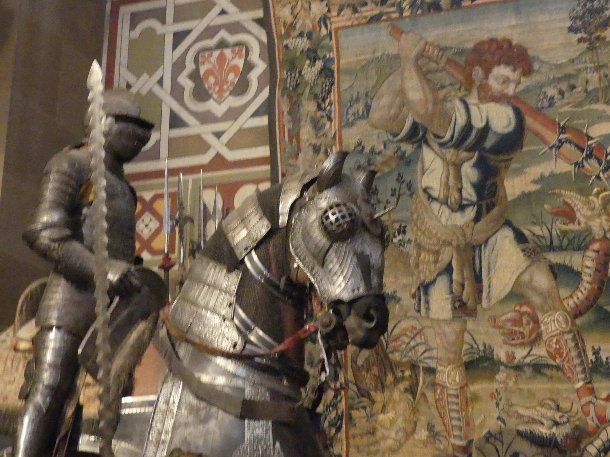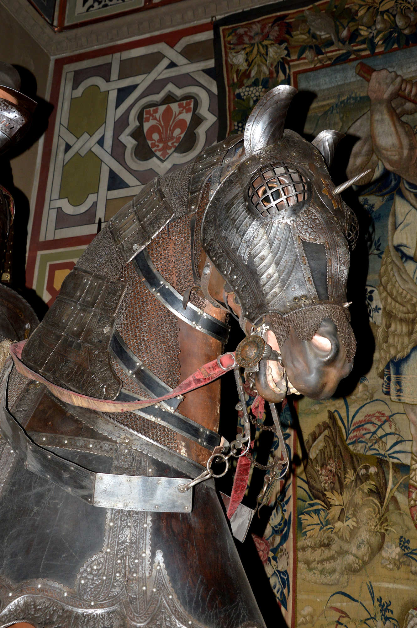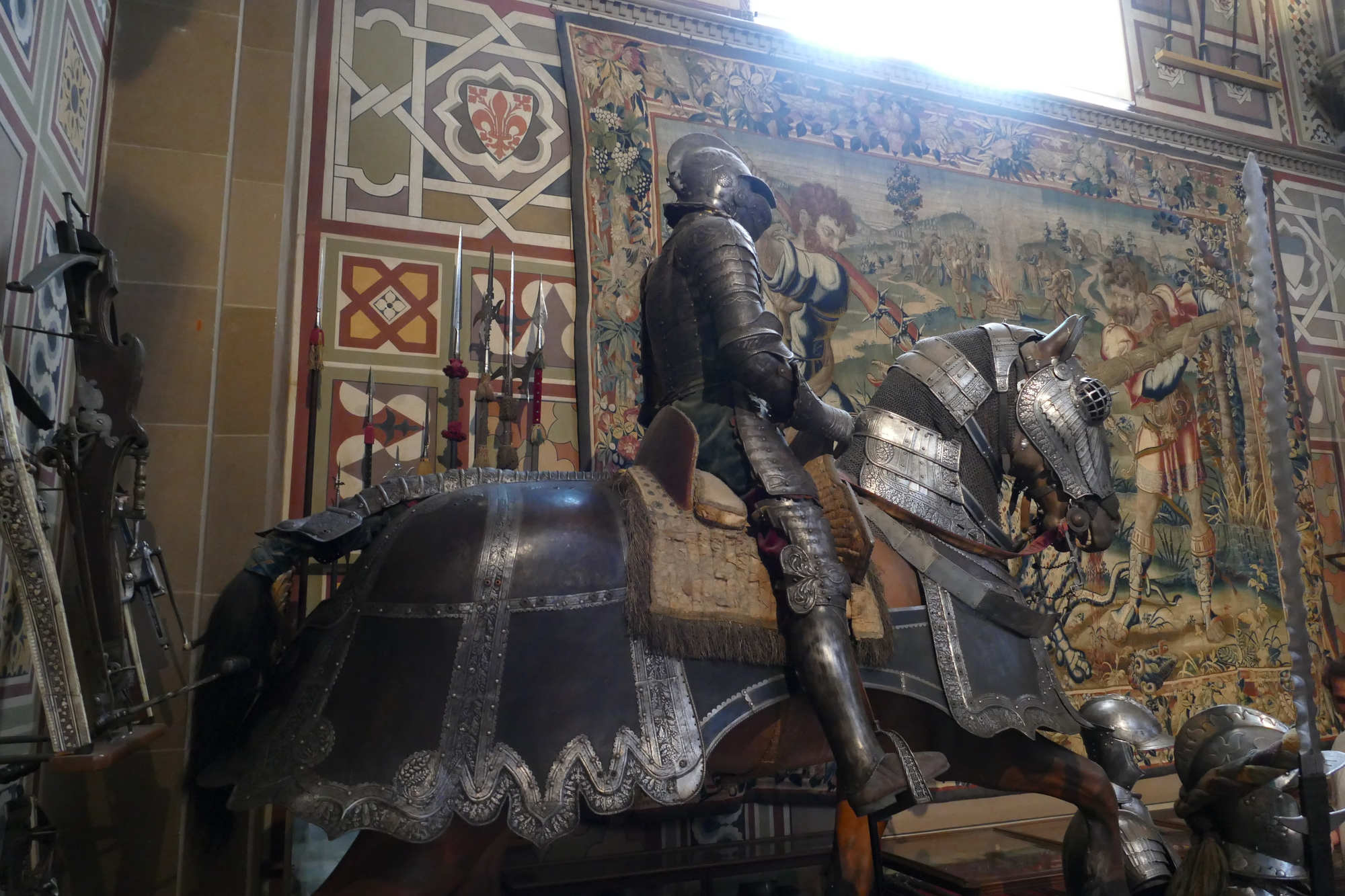 La sella lombarda utilisée avec cette armure présente des arçons hauts pour stabiliser le cavalier, sans bloquer outre mesure ses mouvements.??