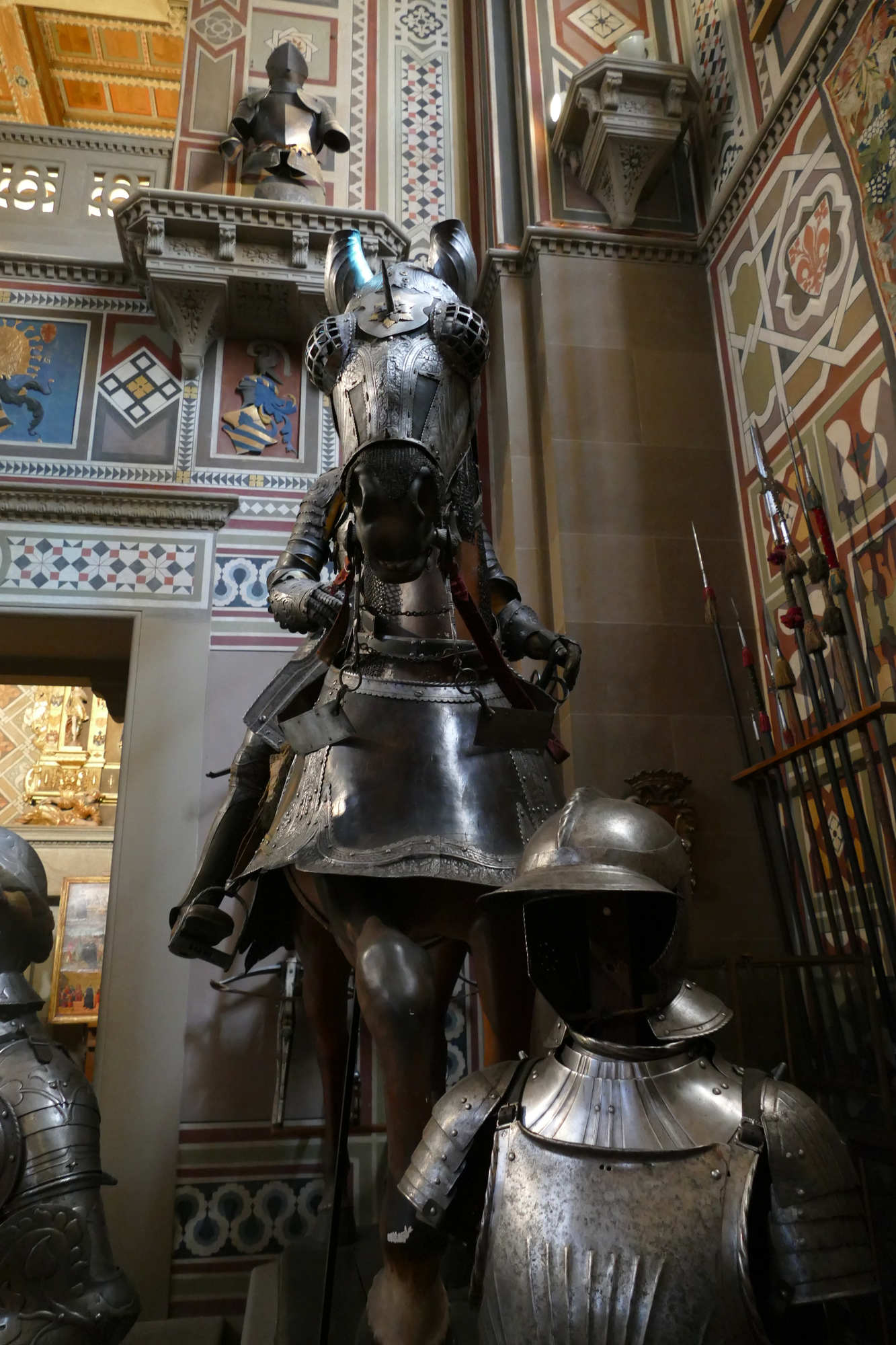 Les armuriers lombards, tels que les Missaglia de Milan, ont perfectionné ce genre d’armure dans le dernier quart du XVe siècle, en réponse à l’évolution tactique de la guerre et à la nécessité de cavalerie mobile.