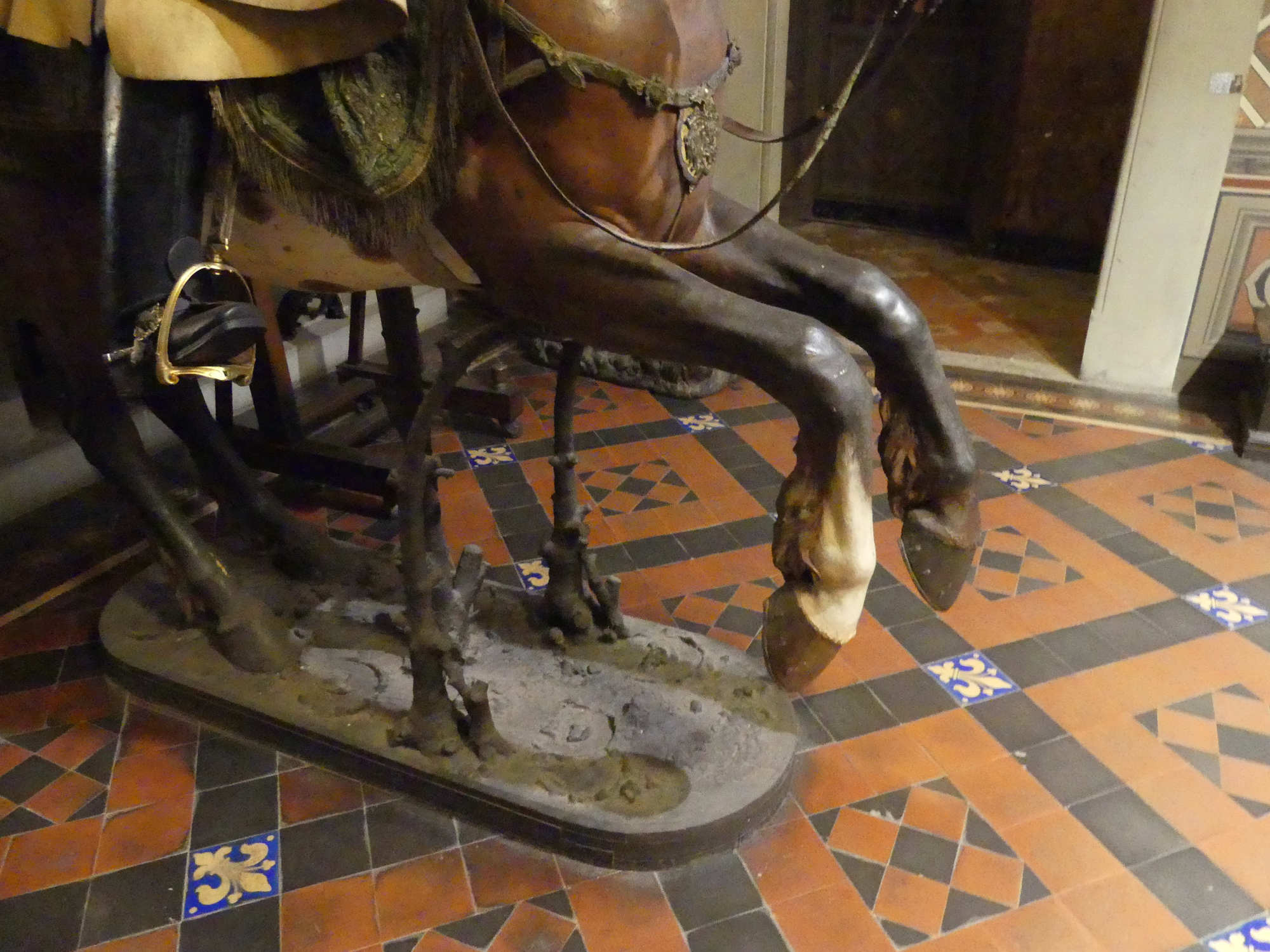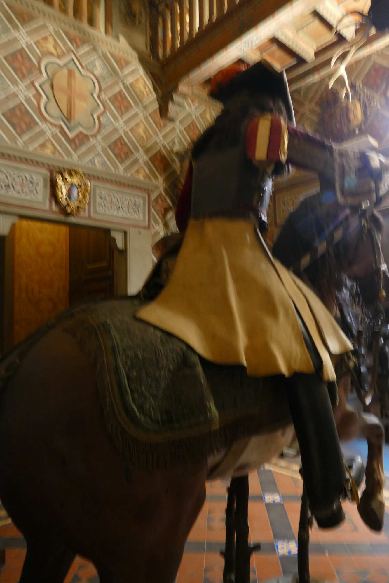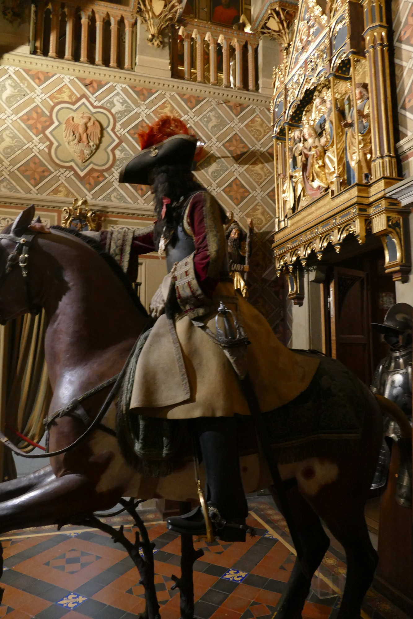 Organisation du régiment en 1665 Le régiment était généralement divisé en plusieurs escadrons entre 2 et 3 , chaque escadron comptant environ 120 à 140 cavaliers. Chaque escadron était lui-même subdivisé en 6 à12 compagnies (ou « pelotons »), rassemblant chacun environ 30 à 40 hommes. L’effectif total d’un régiment variait souvent autour de 500 à 600 hommes, répartis dans 4 à 5 escadrons selon l’époque et les besoins. À la tête du régiment se trouvait le colonel, souvent un noble ou une personnalité militaire notable, avec un lieutenant-colonel comme second. Chaque compagnie était commandée par un capitaine, assisté de lieutenants et sous-lieutenants, soutenus par des sous-officiers.Les cuirassiers portaient une cuirasse complète (plastron et dosseret), un casque type morion ou sallet, un sabre, la lance et parfois des pistolets, montés sur des chevaux bardés. L' Etendard L’étendard d’un régiment de cuirassiers sous Louis XIV était un symbole militaire prestigieux, riche en significations historiques et emblématiques. Description de l’étendard Les couleurs de l’étendard varient, mais souvent la soie bleue ou blanche dominait, avec des ornements dorés pour souligner le faste royal. Chaque régiment avait sa propre version d’étendard avec des inscriptions rappelant ses exploits et son allégeance au roi. Fonction L’étendard remplissait à la fois une fonction cérémonielle (porté en parade, lors des levées de régiment ou campagnes), et une fonction pratique sur le champ de bataille, servant de point de ralliement pour les soldats. Il incarnait l’honneur du régiment et devait être protégé à tout prix; sa perte était un sujet de disgrâce.