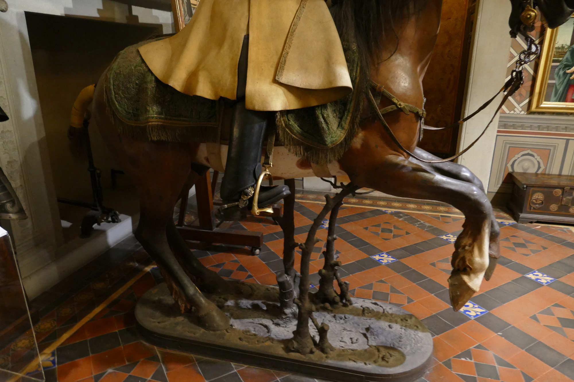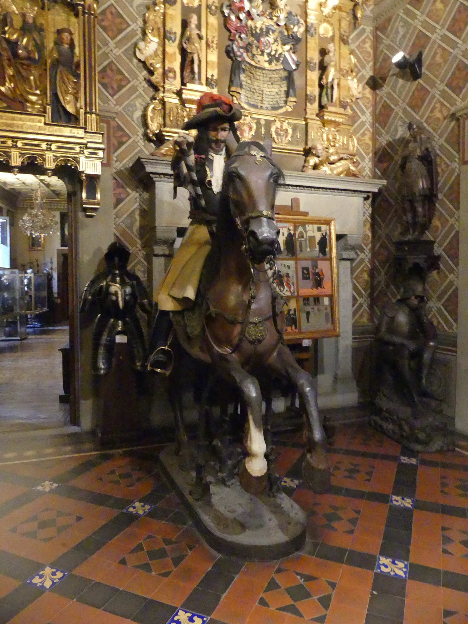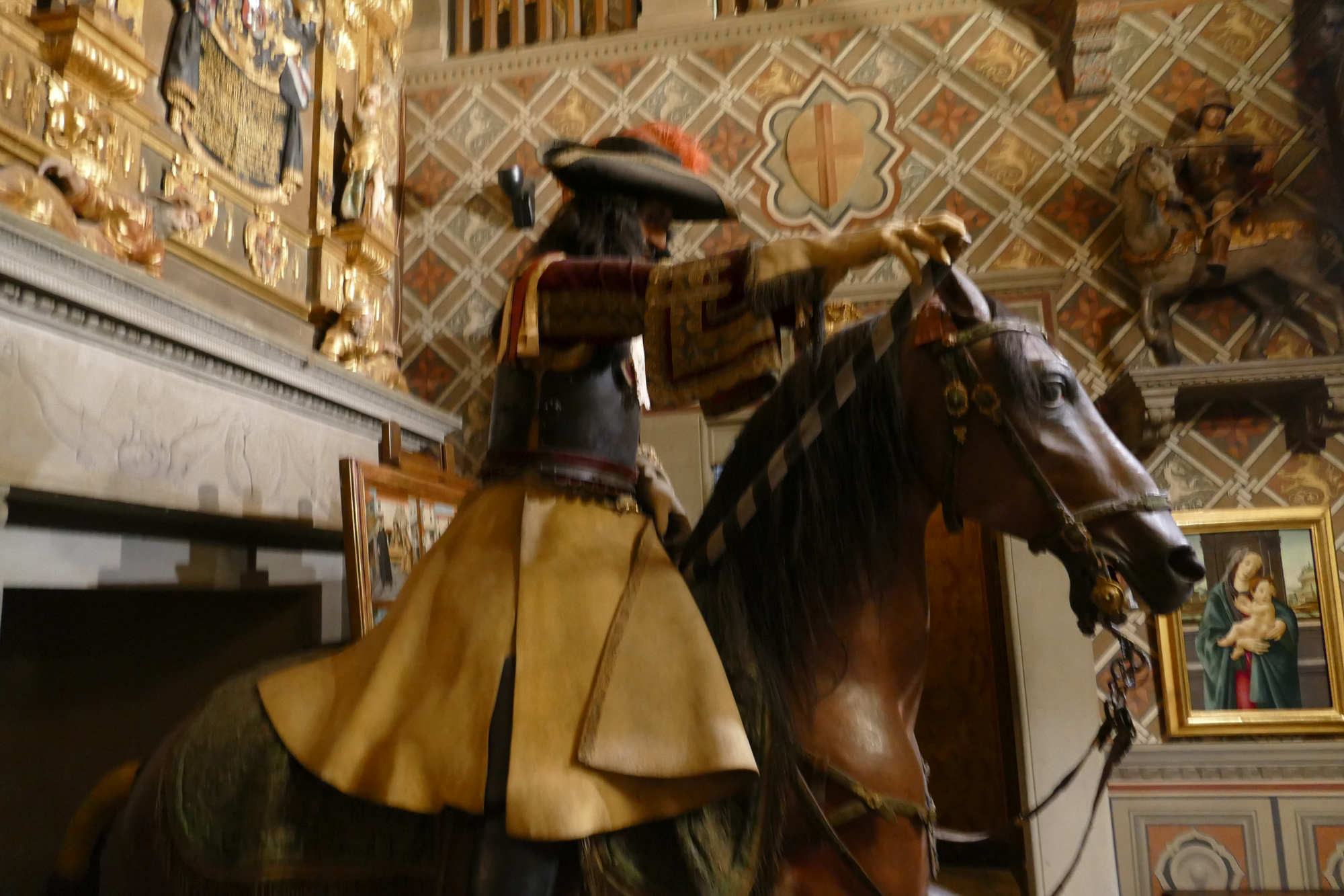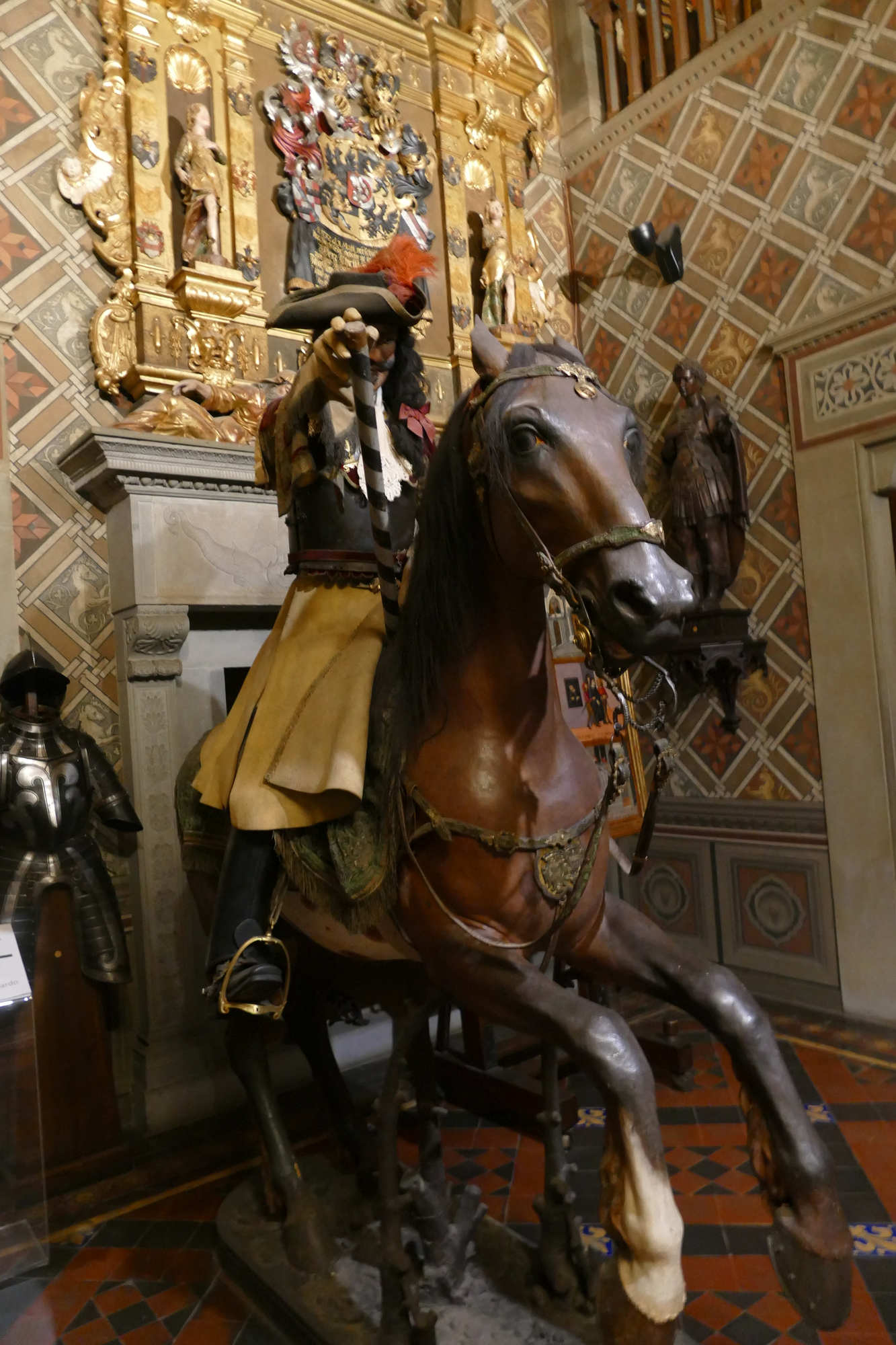 Organisation du régiment en 1665 Le régiment était généralement divisé en plusieurs escadrons entre 2 et 3 , chaque escadron comptant environ 120 à 140 cavaliers. Chaque escadron était lui-même subdivisé en 6 à12 compagnies (ou « pelotons »), rassemblant chacun environ 30 à 40 hommes. L’effectif total d’un régiment variait souvent autour de 500 à 600 hommes, répartis dans 4 à 5 escadrons selon l’époque et les besoins. À la tête du régiment se trouvait le colonel, souvent un noble ou une personnalité militaire notable, avec un lieutenant-colonel comme second. Chaque compagnie était commandée par un capitaine, assisté de lieutenants et sous-lieutenants, soutenus par des sous-officiers.Les cuirassiers portaient une cuirasse complète (plastron et dosseret), un casque type morion ou sallet, un sabre, la lance et parfois des pistolets, montés sur des chevaux bardés. L' Etendard L’étendard d’un régiment de cuirassiers sous Louis XIV était un symbole militaire prestigieux, riche en significations historiques et emblématiques. Description de l’étendard Les couleurs de l’étendard varient, mais souvent la soie bleue ou blanche dominait, avec des ornements dorés pour souligner le faste royal. Chaque régiment avait sa propre version d’étendard avec des inscriptions rappelant ses exploits et son allégeance au roi. Fonction L’étendard remplissait à la fois une fonction cérémonielle (porté en parade, lors des levées de régiment ou campagnes), et une fonction pratique sur le champ de bataille, servant de point de ralliement pour les soldats. Il incarnait l’honneur du régiment et devait être protégé à tout prix; sa perte était un sujet de disgrâce.