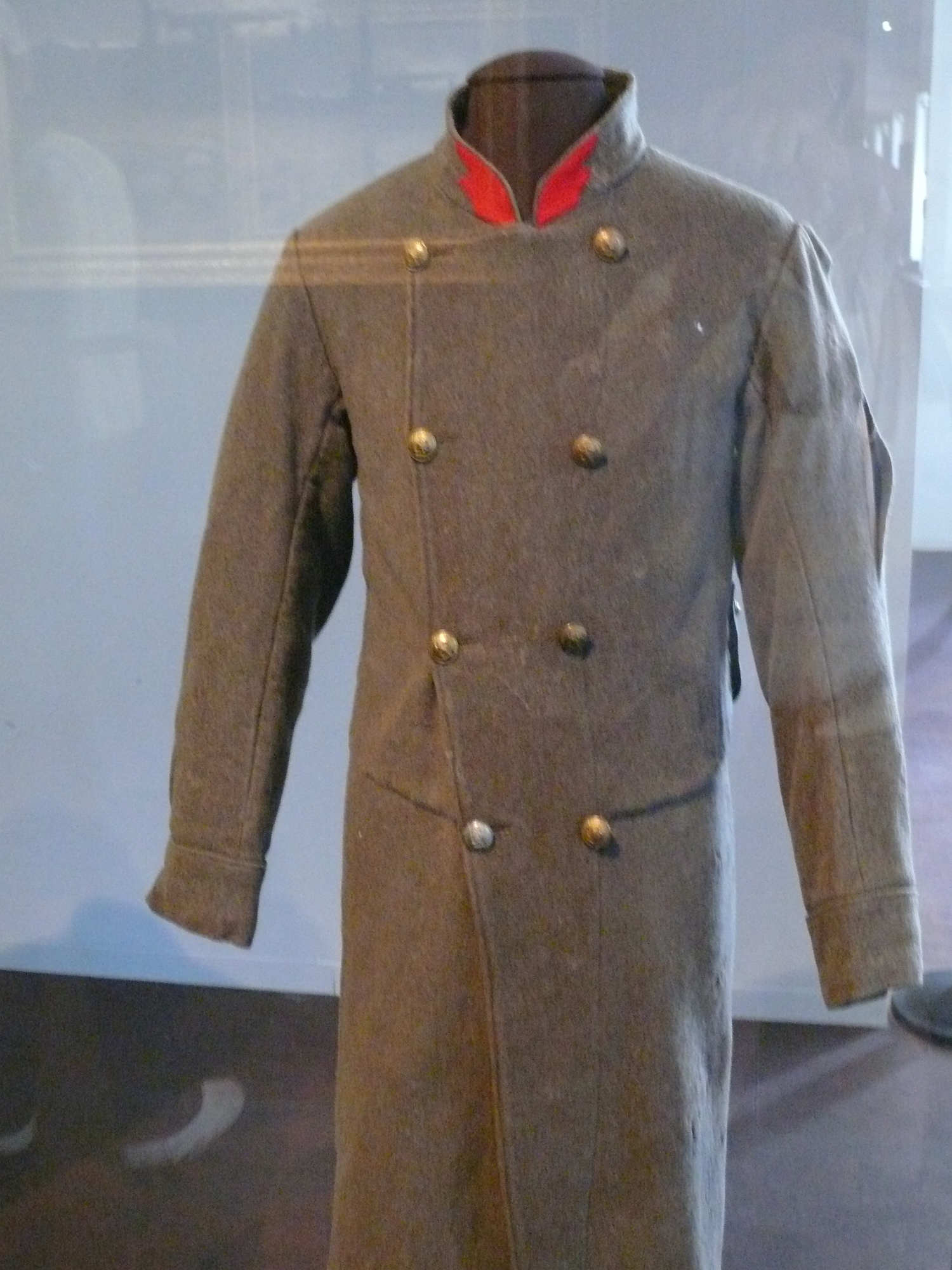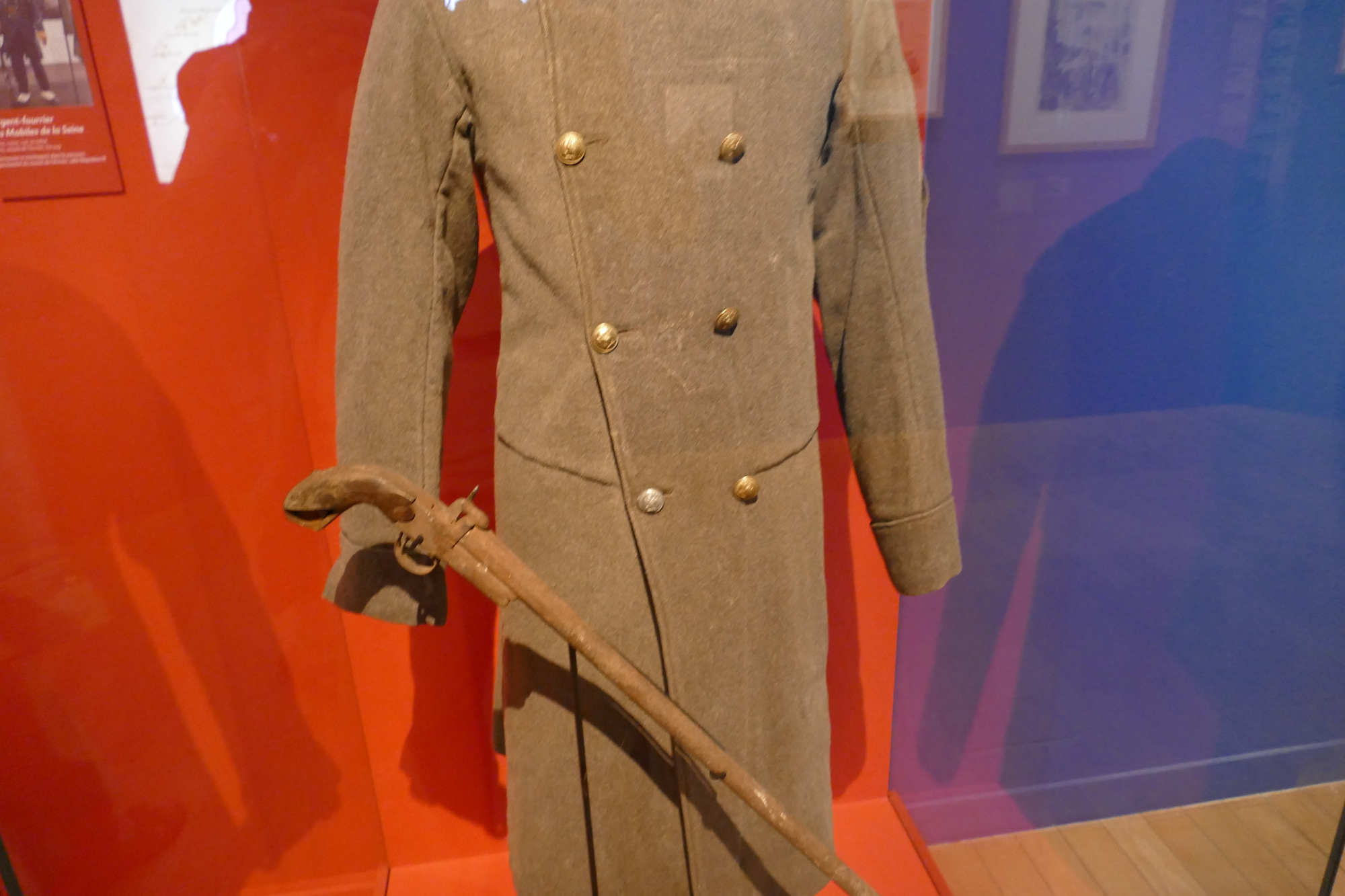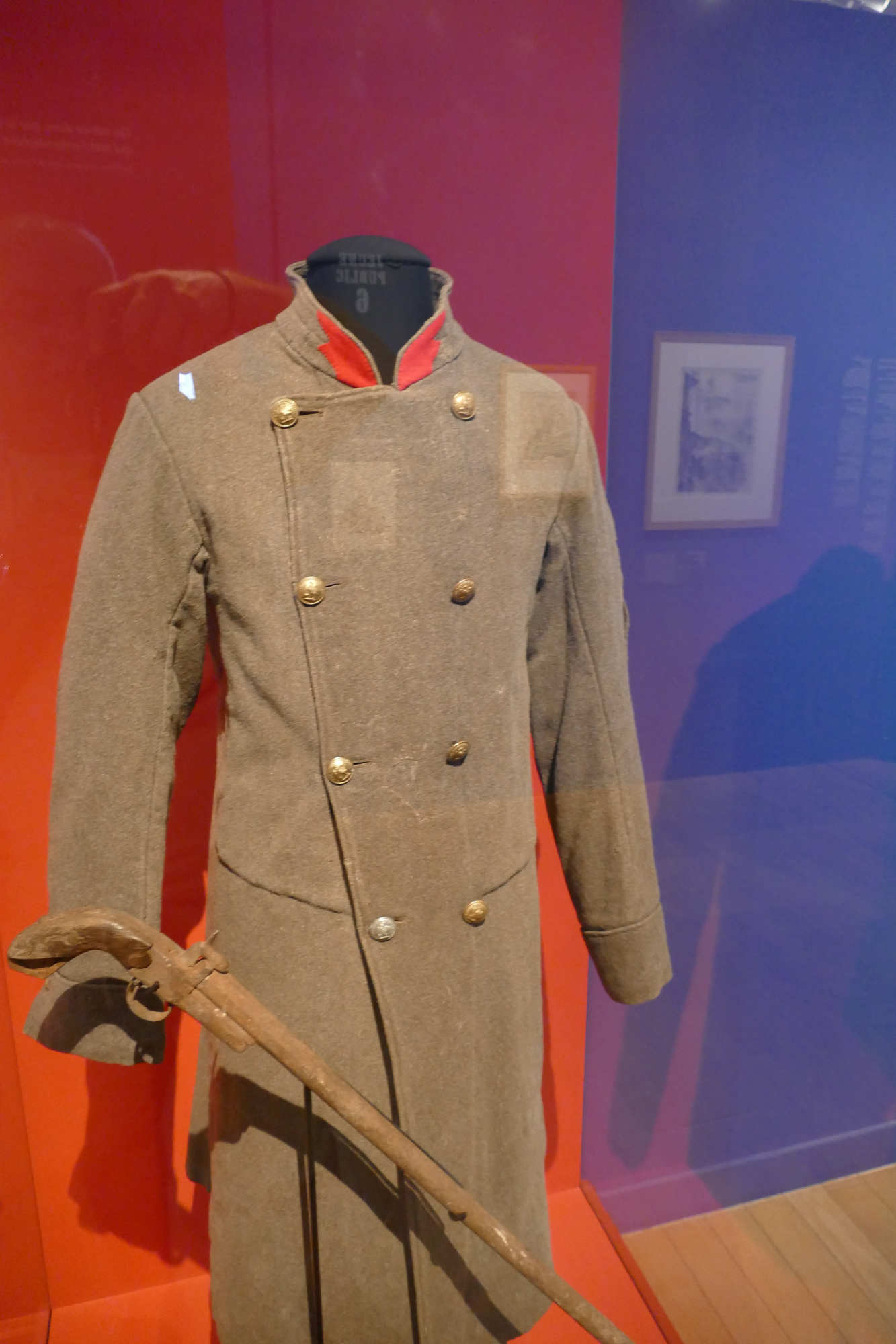 La pièce la plus emblématique était la capote en drap gris verdâtre, parfois remontée comme une veste ou un manteau militaire, souvent combinée à un képi (coiffure militaire typique), de couleurs variables mais souvent rouge ou ornée d’insignes rouges, couleur symbole de la Commune.