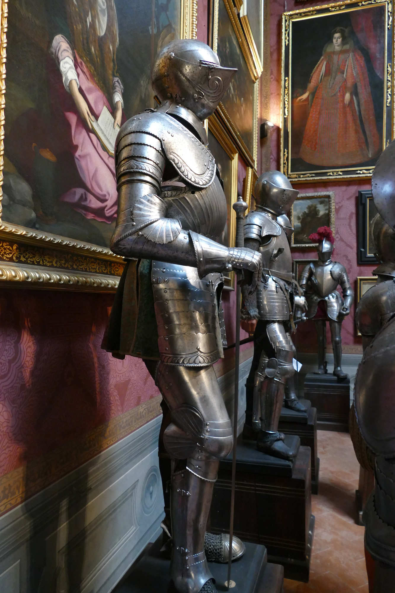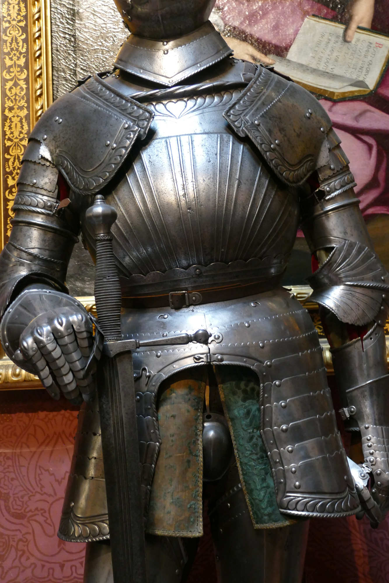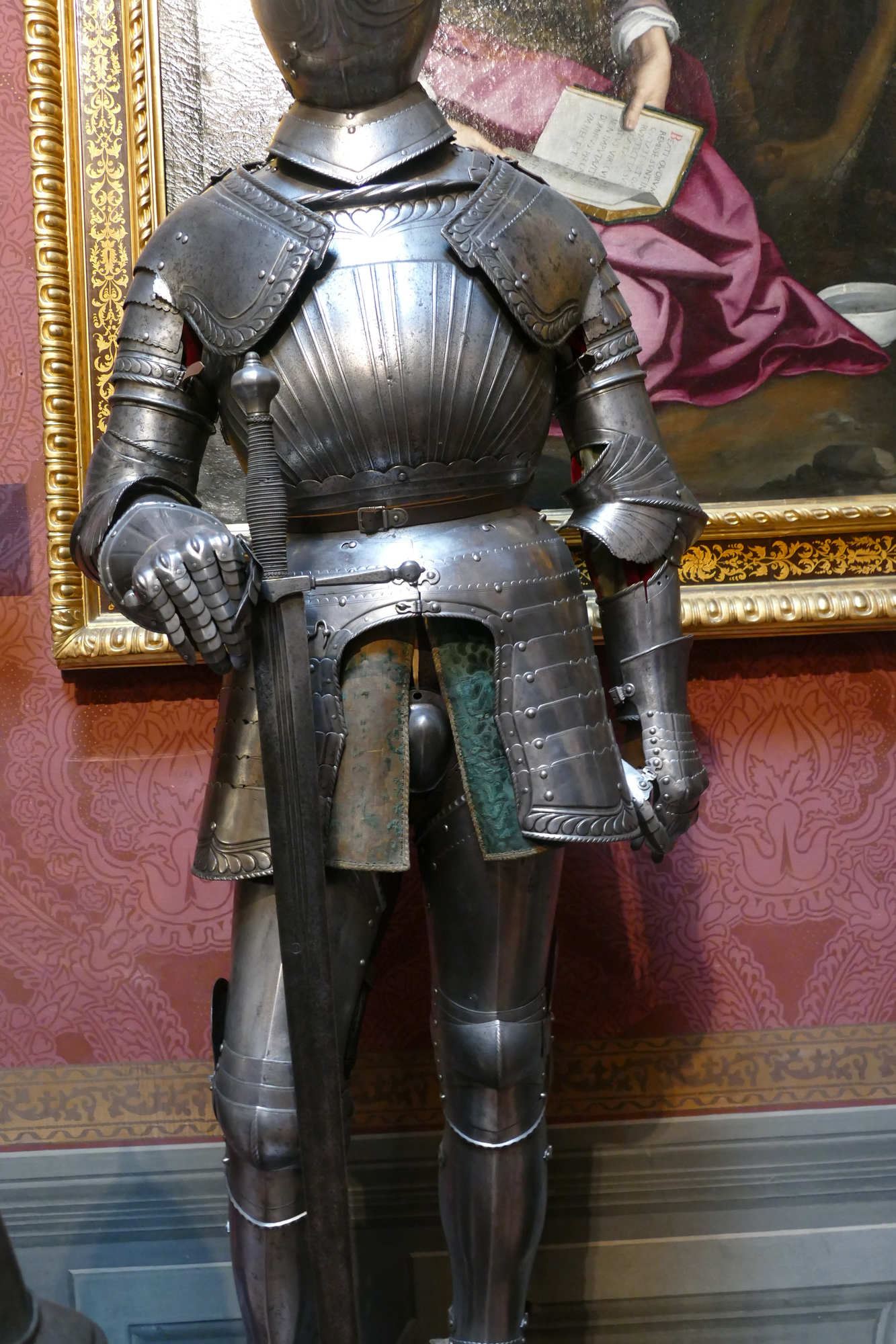 L’armure montrée est une armure de cavalier lourd (type gendarme / chevau-léger) de la fin du XVI?–début XVII? siècle, plutôt qu’une armure d’infanterie. ?
