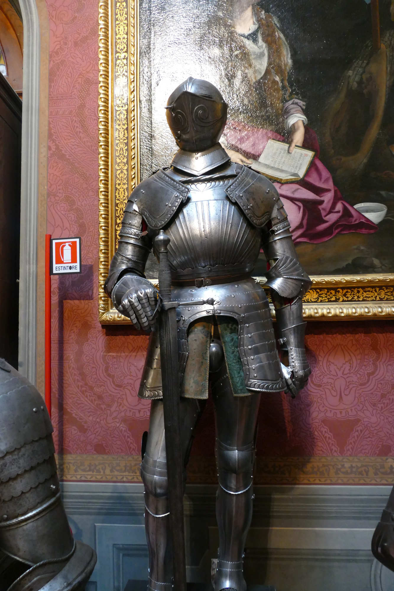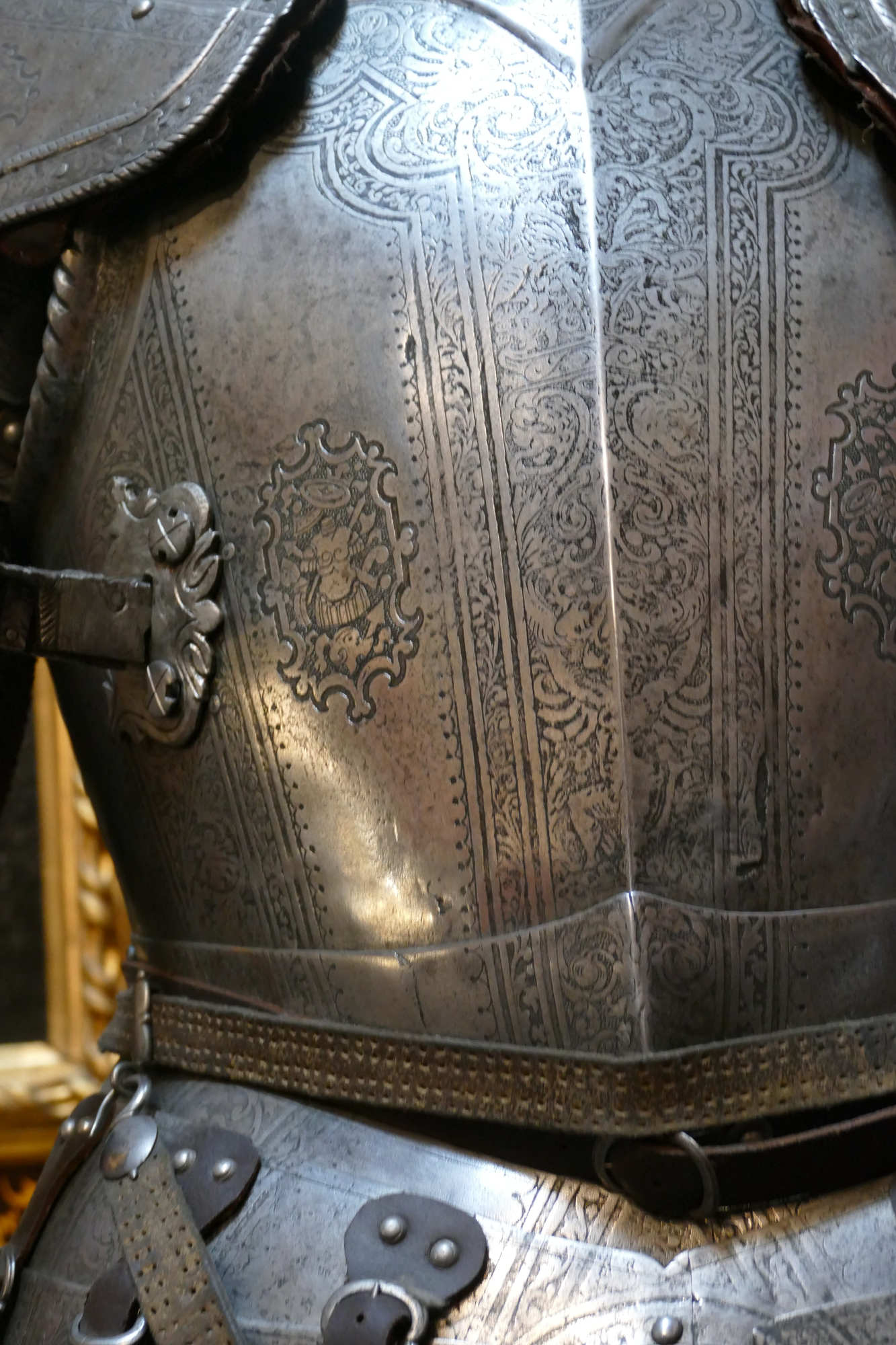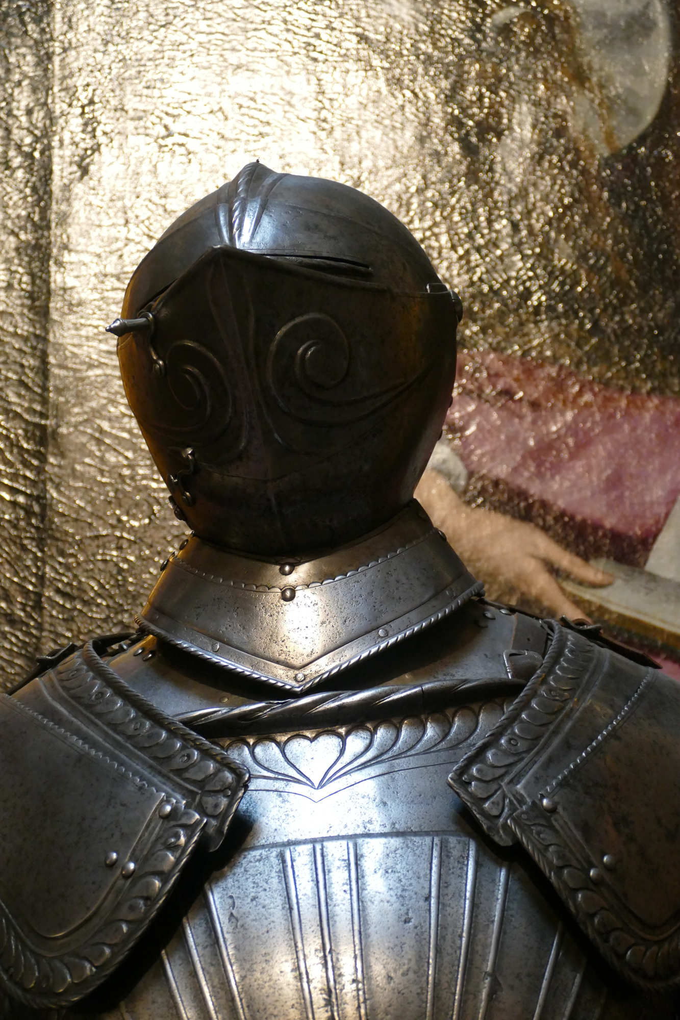 L’armure montrée est une armure de cavalier lourd (type gendarme / chevau-léger) de la fin du XVI?–début XVII? siècle, plutôt qu’une armure d’infanterie. ?