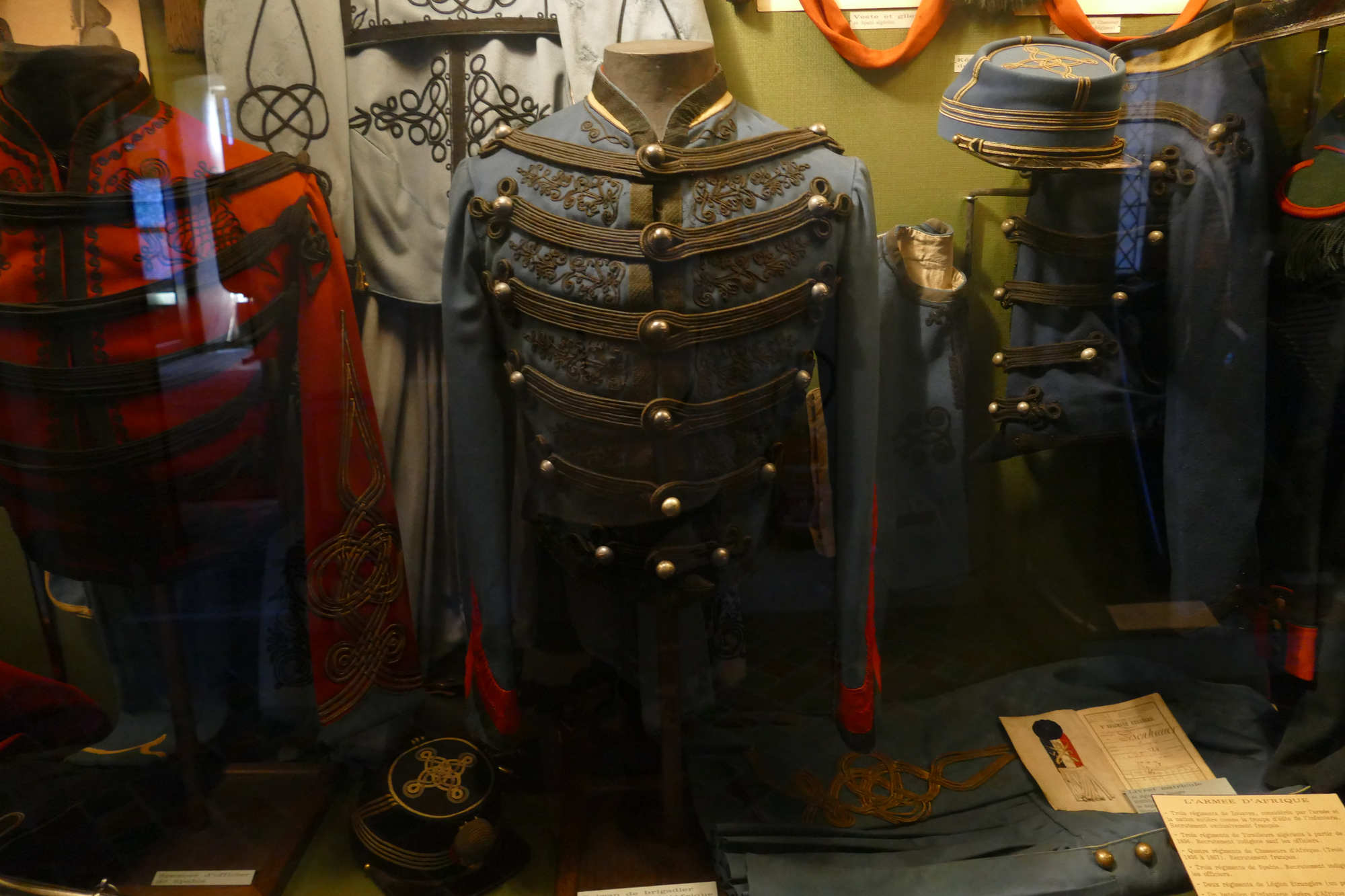 Nous avons ici un dolman de Brigadier du 3e RCA Le Brigadier est un grade equivalent à celui de caporal dans la cavalerie et l’artillerie Il commande généralement une demi-escouade et seconde le maréchal des logis. Grade porté par des soldats expérimentés, souvent engagés dans des actions de reconnaissance et de combat rapide.
