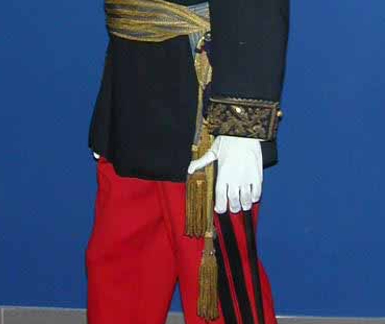 Pantalon de grande tenue en drap garance à deux bandes et passepoil noirs