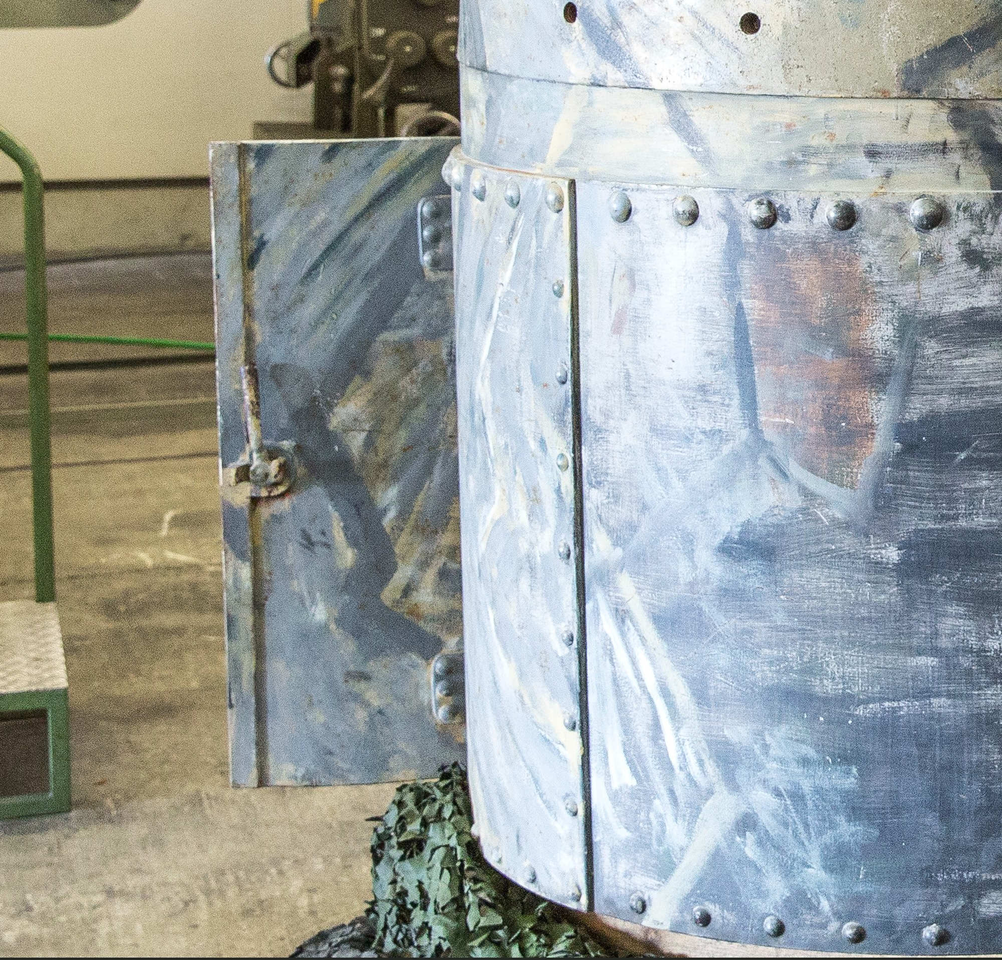 Selon la conception et le dessin originaux l'artilleur pouvait faire pivoter la tourelle en appuyant sur ses pieds sur la plate-forme et en poussant avec ses épaules contre une barre en forme de U qui était reliée à ladite tourelle.