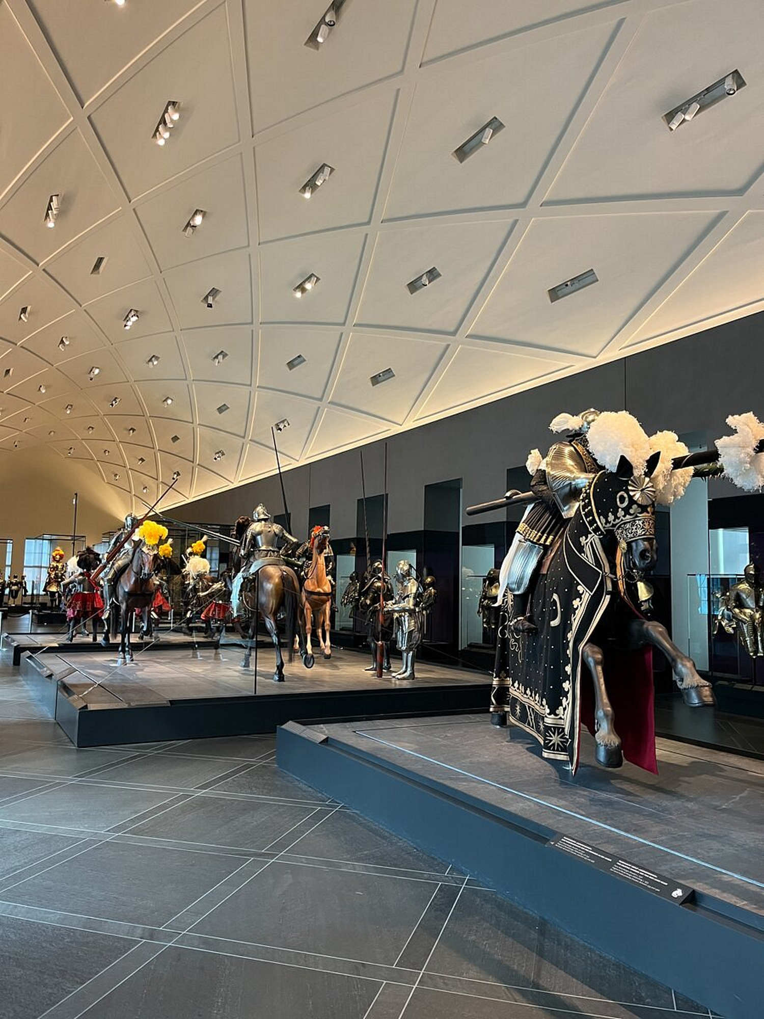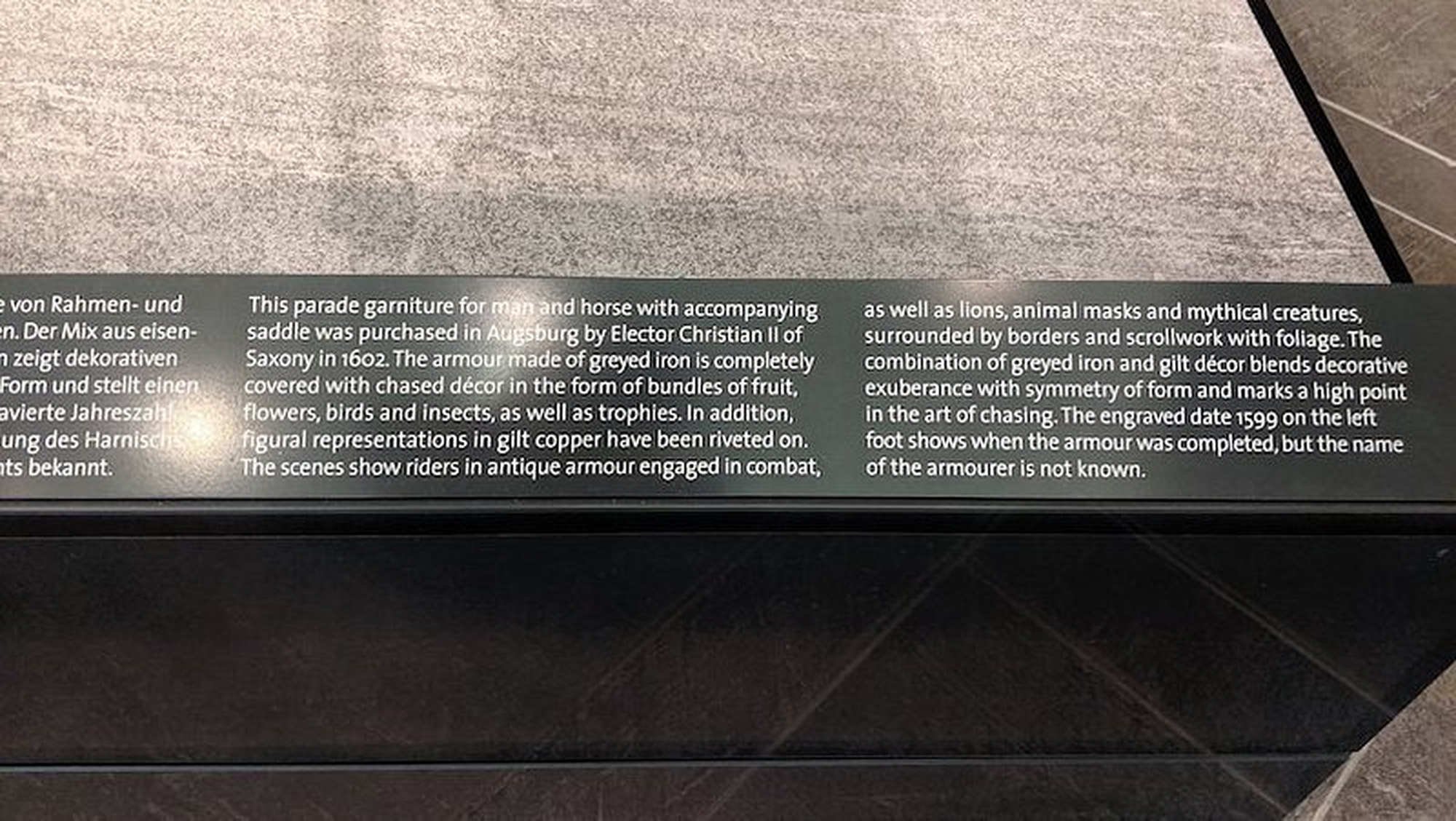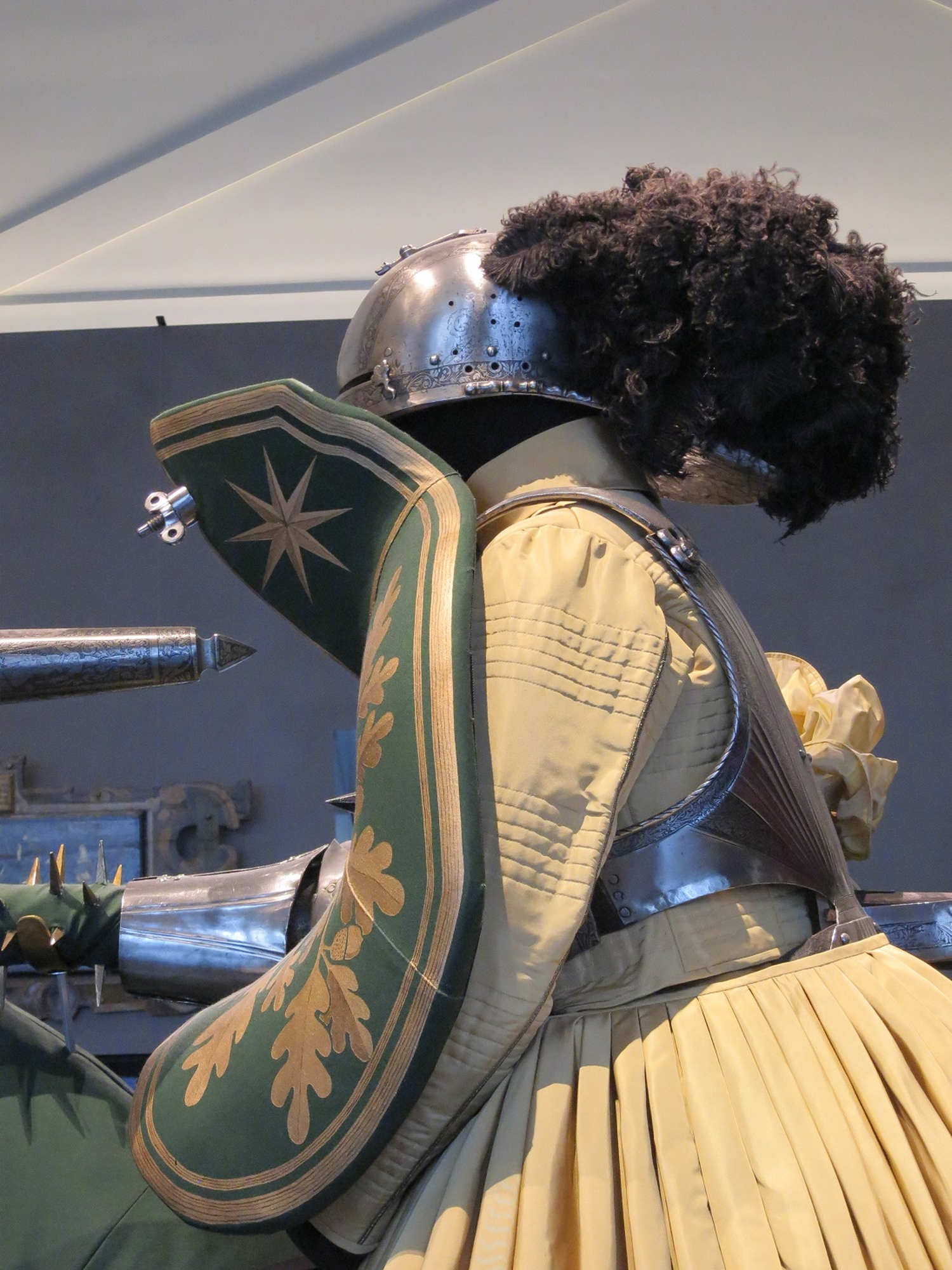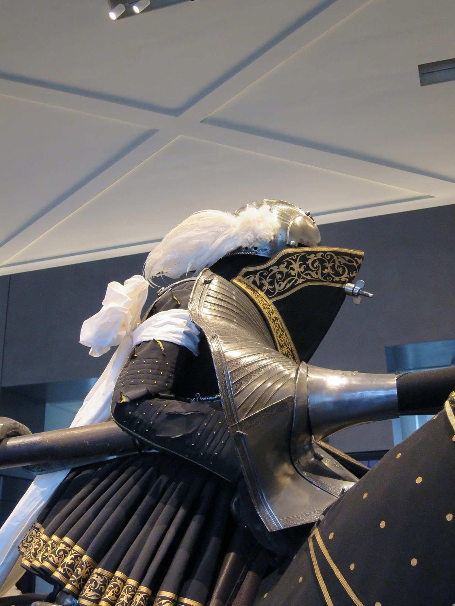 Ce qui marque dans ces armures de rennen c'est l'imposant bouclier protégeant le haut du corps et la moitié inférieure du visage du cavalier. Le bouclier était vissé à l'armure au niveau du ventre et du menton, d'où le nom de course « en armure ».