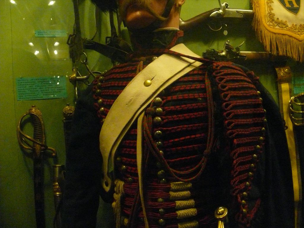 Autres éléments : sabretache ornée, sabre courbe, cartouchière, etc.