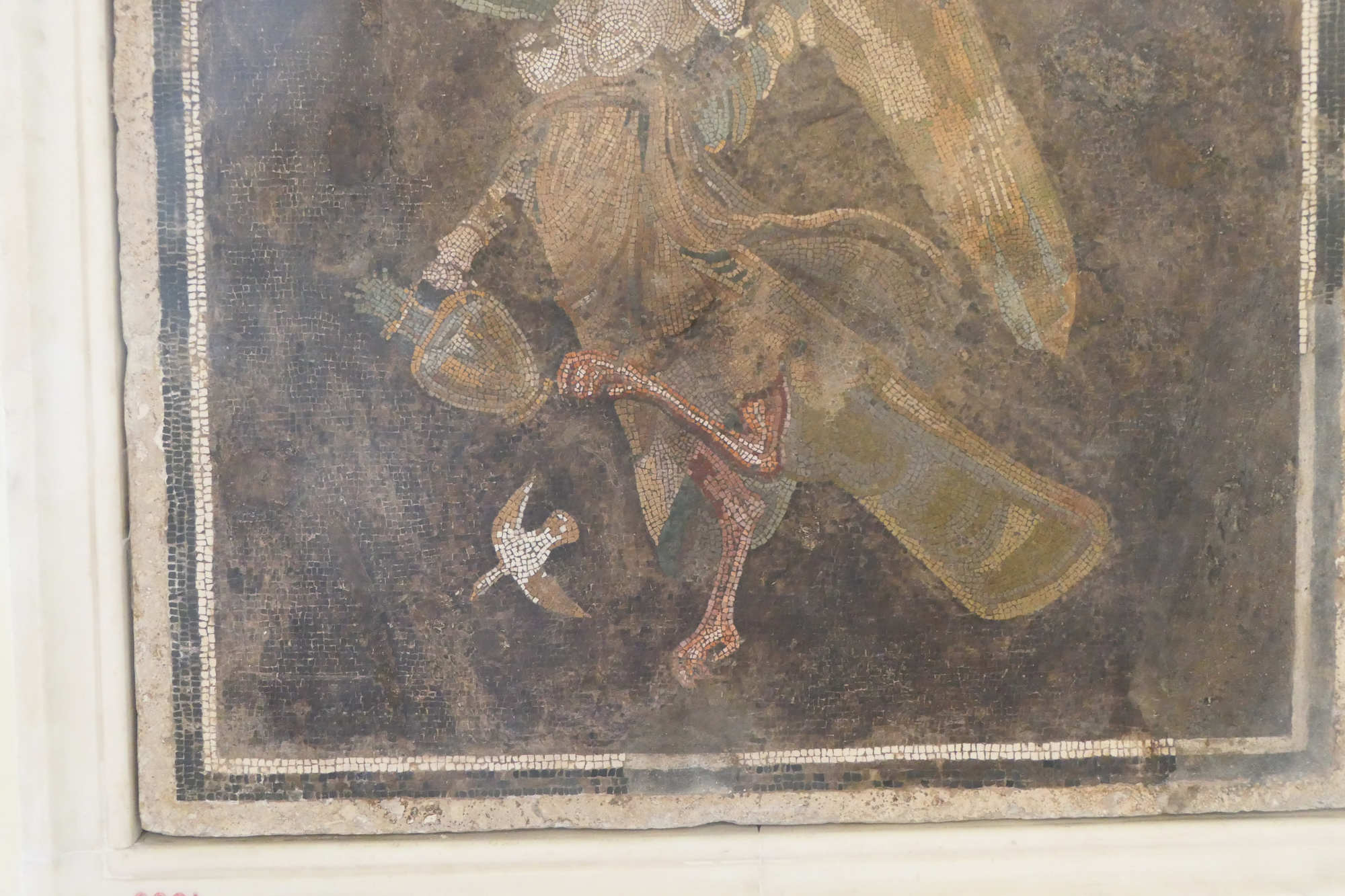 Elle appartient à la Collection Farnèse. Cela signifie qu'elle n'est pas issue des fouilles de Pompéi ou Herculanum, contrairement à la majorité des mosaïques du musée.de Naples Pourquoi la provenance exacte est inconnue