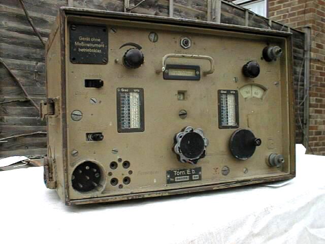 Probably the most commonly encountered German radio is the Tornister empfanger b set. We will use the original German designation of the receiver we are going to discuss now. The photograph shows a front view of the set. You see that the set consists of two units above each other. The cabinets meant to be carried on the back of a soldier-that house the units are called "Tornister' in German.